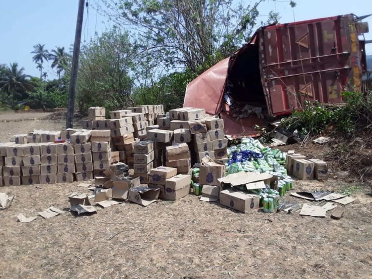 ಆದರೆ ವಿವಿಧ ಬ್ರ್ಯಾಂಡ್ನ ಮದ್ಯದ ಬಾಕ್ಸ್ಗಳನ್ನು ತುಂಬಿಕೊಂಡು ಹೊರಟಿದ್ದ ಈ ಲಾರಿ ಅಪಘಾತಕ್ಕೀಡಾಗಿ ಪಲ್ಟಿಯಾಗಿದ್ದರಿಂದ, ಅದರಲ್ಲಿ ತುಂಬಿದ್ದ ಮದ್ಯದ ಬಾಕ್ಸ್ಗಳು ರಸ್ತೆಗೆ ಬಿದ್ದು ಚೆಲ್ಲಾಪಿಲ್ಲಿಯಾಗಿವೆ.