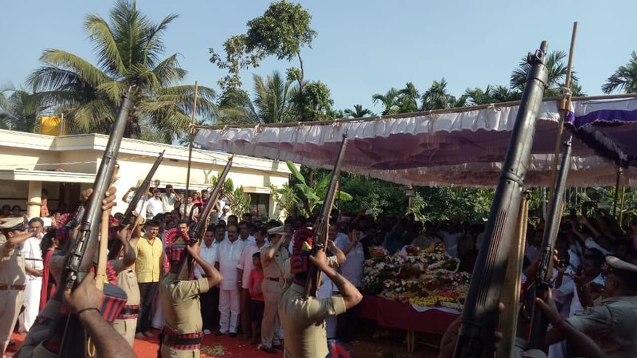 ಜಿಲ್ಲಾಡಳಿತದ ಪ್ರತಿನಿಧಿಯಾಗಿ ಆಗಮಿಸಿದ ಬಂಟ್ವಾಳ ತಹಸೀಲ್ದಾರ್ ರಶ್ಮಿ ಎಸ್.ಆರ್. ನೇತೃತ್ವದಲ್ಲಿ ಸಕಲ ಸರ್ಕಾರಿ ಗೌರವ ನೀಡಲಾಯಿತು. ಪೊಲೀಸ್ ಡಿವೈಎಸ್ಪಿ ದಿನಕರ ಶೆಟ್ಟಿ ಮುಂದಾಳತ್ವದಲ್ಲಿ ಪೊಲೀಸ್ ಜಿಲ್ಲಾ ಸಶಸ್ತ್ರ ಮೀಸಲು ಪಡೆಯ ಇನ್ಸ್ಪೆಕ್ಟರ್ ನಾರಾಯಣ್ ಪೂಜಾರಿ ನೇತೃತ್ವದಲ್ಲಿ ಹೂಗುಚ್ಛ ಇರಿಸಿ, ಮೂರು ಬಾರಿ ಕುಶಾಲತೋಪು ಸಿಡಿಸಿ, ಸಕಲ ಸರ್ಕಾರಿ ಗೌರವಗಳೊಂದಿಗೆ ಅಂತಿಮ ನಮನ ಸಲ್ಲಿಸಲಾಯಿತು.