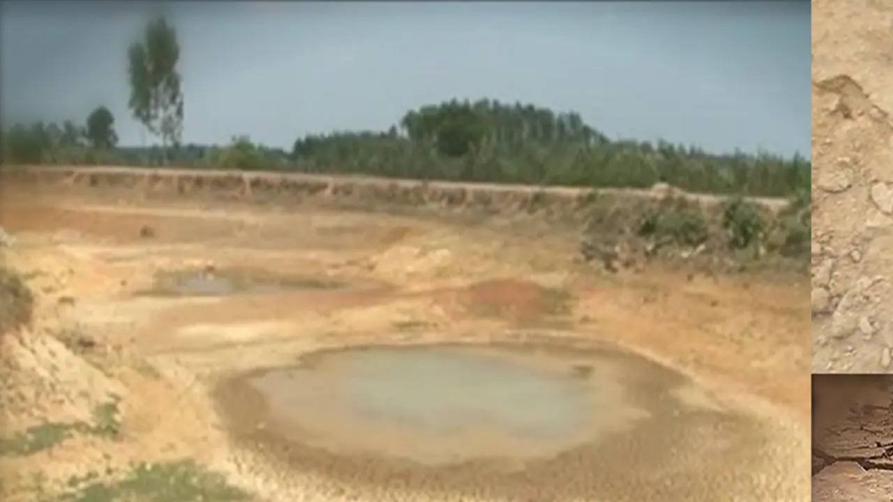 ಅಪ್ಪಟ ಮಲೆನಾಡು ಚಿಕ್ಕಮಗಳೂರು ಜಿಲ್ಲೆ ಮೂಗ್ತಿಹಳ್ಳಿಯಲ್ಲಿ ಬರದ ಭಯಾನಕ ದೃಶ್ಯಗಳು ಕಂಡುಬರುತ್ತಿವೆ. ಇಲ್ಲಿನ ಎರಡು ಕೆರೆಗಳು ಜಲಚರಗಳ ಪಾಲಿಗೆ ಸಾವಿನ ಕೂಪವಾಗಿವೆ. ಬಿಸಿಲಿನ ತಾಪಕ್ಕೆ ಕೆರೆಯ ನೀರೆಲ್ಲ ಬತ್ತಿ ಹೋಗಿ ಬಿರುಕು ಸೆಳೆದಿವೆ. ಈ ಕೆರೆಯನ್ನೇ ನಂಬಿಕೊಂಡಿದ್ದ ಸಾವಿರಾರು ಕಪ್ಪೆಗಳು ಸತ್ತು ಒಣಗಿಹೋಗಿವೆ.