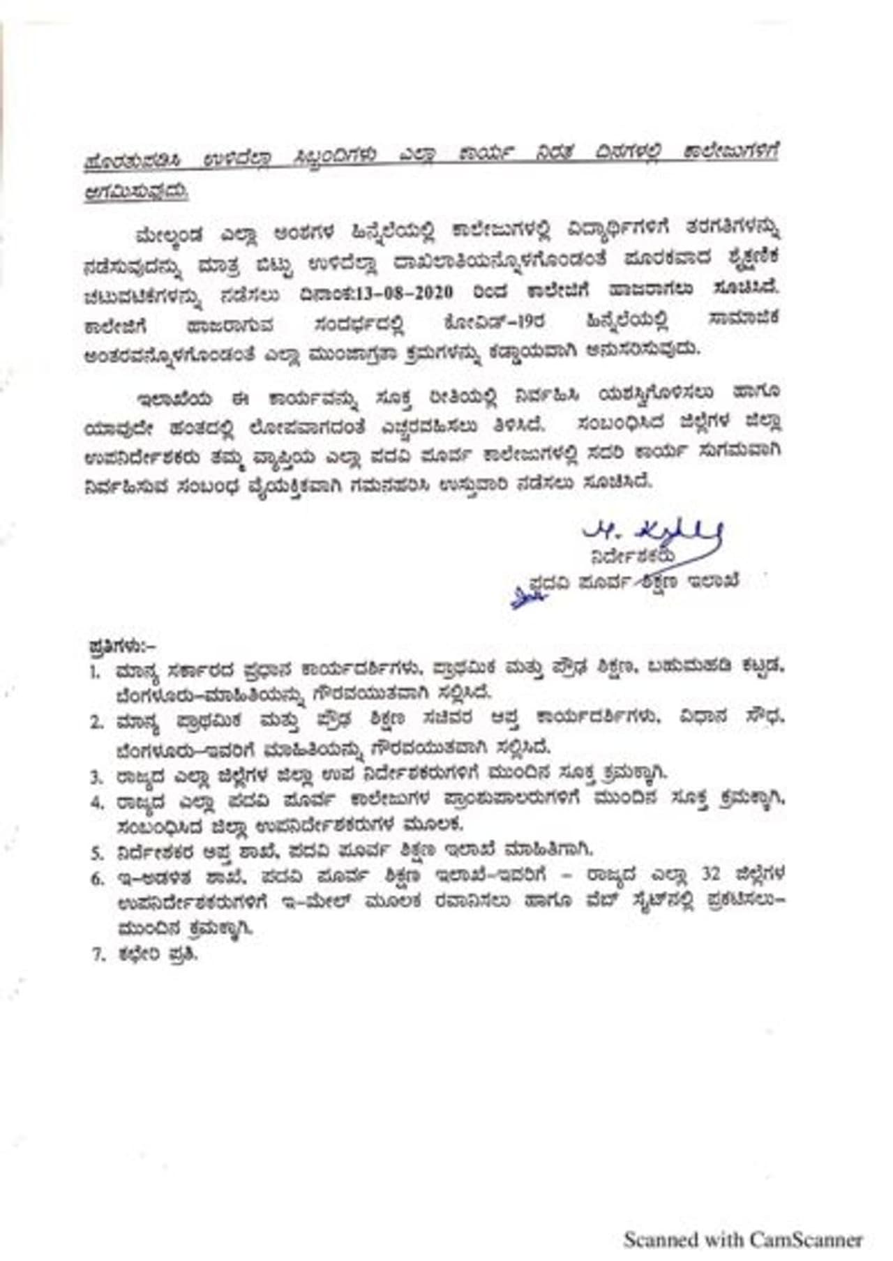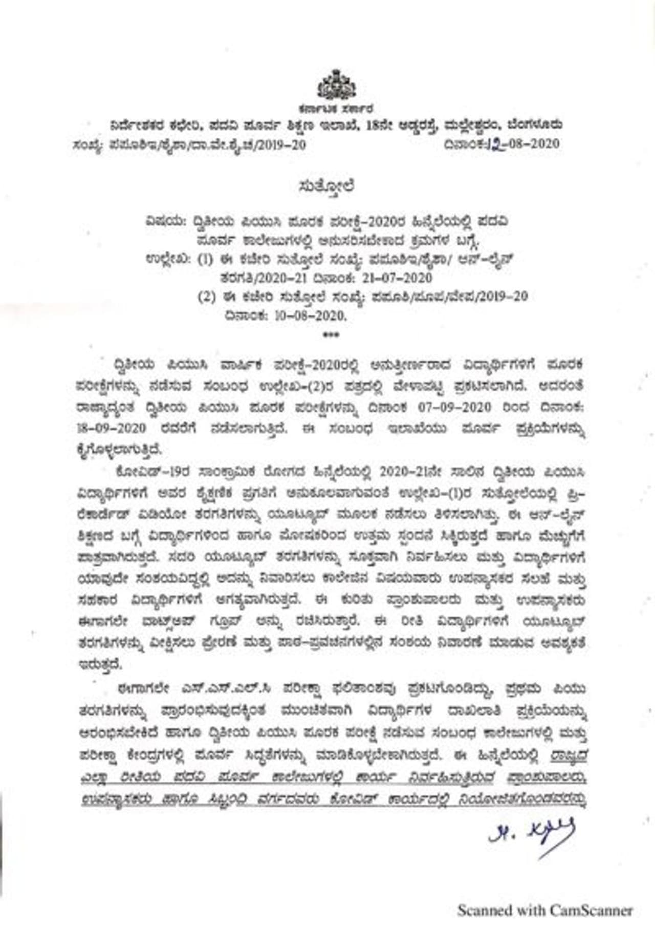 ಬೆಂಗಳೂರು, (ಆ.12): 2020-21 ಸಾಲಿನ ಪಿಯುಸಿಗೆ ದಾಖಲಾತಿಗಳನ್ನು ಮಾಡಿಕೊಳ್ಳುವಂತೆ ರಾಜ್ಯ ಪದವಿ ಪೂರ್ವ ಶಿಕ್ಷಣ ಇಲಾಖೆ ಇಂದು (ಬುಧವಾರ) ಆದೇಶ ಹೊರಡಿಸಿದೆ.
