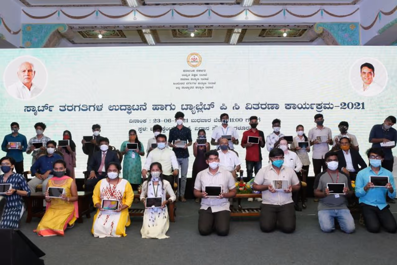 ಉನ್ನತ ಶಿಕ್ಷಣ ವಿದ್ಯಾರ್ಥಿಗಳಿಗೆ ʼಕಲಿಕಾ ನಿರ್ವಹಣಾ ವ್ಯವಸ್ಥೆʼಯ ಮೂಲಕ ಬೋಧನೆ- ಕಲಿಕೆಗಾಗಿ ಟ್ಯಾಬ್ಲೆಟ್, ಪಿಸಿಗಳನ್ನು ನೀಡಲಾಗಿದ್ದು, ವಿಧಾನಸೌಧದ ಬ್ಯಾಂಕ್ವೆಟ್ ಹಾಲ್ನಲ್ಲಿ ಇಂದು(ಬುಧವಾರ) ನಡೆದ ಕಾರ್ಯಕ್ರಮದಲ್ಲಿ ಮುಖ್ಯಮಂತ್ರಿ ಯಡಿಯೂರಪ್ಪ ಕಾರ್ಯಕ್ರಮಕ್ಕೆ ಹಸಿರು ನಿಶಾನೆ ತೋರಿದರು. ಹತ್ತು ವಿದ್ಯಾರ್ಥಿಗಳಿಗೆ ಸಾಂಕೇತಿಕವಾಗಿ ಟ್ಯಾಬ್ಲೆಟ್ ಪಿಸಿಗಳನ್ನು ವಿತರಿಸಿದ್ದಾರೆ.
