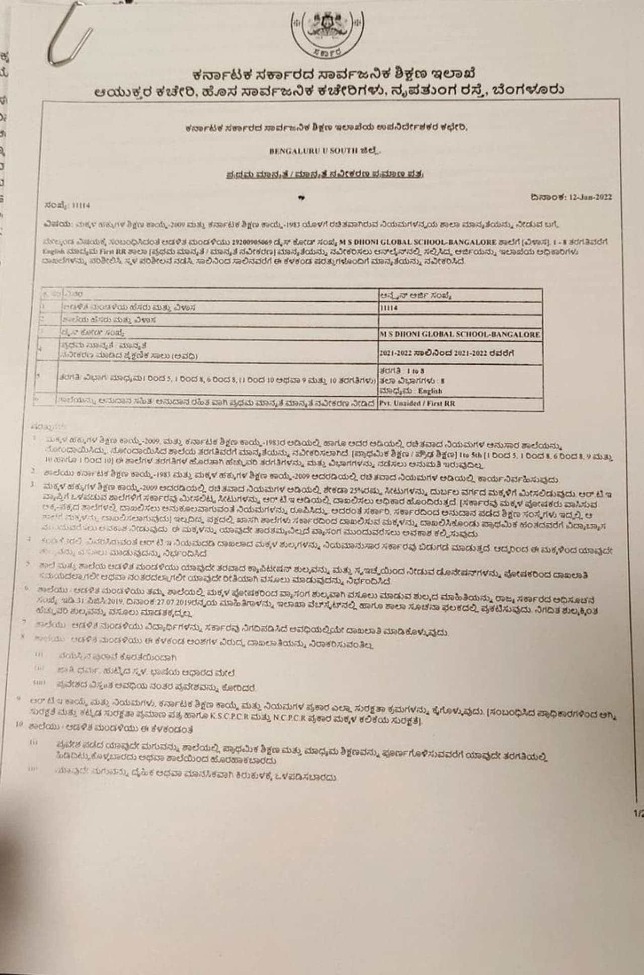 ಇಲ್ಲಿನ ಸಿಂಗಸಂದ್ರದಲ್ಲಿ ಕಳೆದ ವರ್ಷವಷ್ಟೇ ಅಂದರೆ 2021-22ರಲ್ಲಿ ಶಾಲೆ ಆರಂಭವಾಗಿತ್ತು. ಎಂ ಎಸ್ ಧೋನಿ ಶಾಲೆಯಲ್ಲಿ ಒಂದರಿಂದ ಎಂಟನೇ ತರಗತಿವರೆಗೆ ಬೋಧನೆ ಮಾಡಲಾಗುತ್ತಿತ್ತು. ಇದೀಗ ಅನಧಿಕೃತ ಪಠ್ಯ ಬೋಧನೆ ಮಾಡುತ್ತಿರುವ ಹಿನ್ನೆಲೆಯಲ್ಲಿ ಧೋನಿ ಶಾಲೆಗೆ ನೋಟಿಸ್ ನೀಡಲಾಗಿದೆ. ಪ್ರಸಕ್ತ ವರ್ಷ ಧೋನಿ ಶಾಲೆಯಲ್ಲಿ ಒಟ್ಟು 248 ಮಕ್ಕಳು ದಾಖಲಾತಿ ಪಡೆದಿದ್ದರು. ಇದೀಗ ಧೋನಿ ಶಾಲೆ ಸೇರಿದಂತೆ ಬೆಂಗಳೂರಿನ 8 ಶಾಲೆಗಳಿಗೆ ನೋಟಿಸ್ ನೀಡಲಾಗಿದೆ.