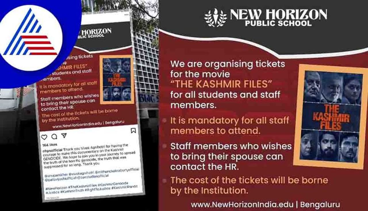ನ್ಯೂ ಹಾರಿಜನ್ ಪಬ್ಲಿಕ್ ಸ್ಕೂಲ್ ಆಡಳಿತ ಮಂಡಳಿಯು ಈ ಹಿಂದೆ ರಾಮಮಂದಿರ ಟ್ರಸ್ಟ್ಗೆ ದೇಣಿಗೆ ನೀಡಿತ್ತು, ರಾಮಮಂದಿರದ ಶಂಕುಸ್ಥಾಪನೆಯ ಸಂದರ್ಭದಲ್ಲಿ ಶಾಲೆಯಲ್ಲಿ ಭೂಮಿ ಪೂಜೆಯ ಸಮಾರಂಭವನ್ನು ಕೂಡ ನಡೆಸಿತ್ತು. ಇದರ ಜೊತೆಗೆ ಮಾರ್ಚ್ ನಲ್ಲಿ ಸಂಸ್ಥೆಯ ಸಿಬ್ಬಂದಿಗಳನ್ನು ಕಾಶ್ಮೀರ ಫೈಲ್ಗಳ ಚಿತ್ರದ ವೀಕ್ಷಣೆಗೆ ಕಡ್ಡಾಯವಾಗಿ ಹಾಜರಾಗುವಂತೆ ಆದೇಶಿಸಿತ್ತು. ಕಾಶ್ಮೀರ ಫೈಲ್ಸ್ ಚಲನಚಿತ್ರಕ್ಕಾಗಿ ಟಿಕೆಟ್ಗಳನ್ನು ಆಯೋಜಿಸುತ್ತಿದೆ ಎಂದು ನೋಟಿಸ್ ಪ್ರಕಟಿಸಿತ್ತು.