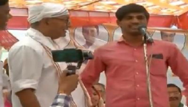 ಭೋಪಾಲ್(ಏ.24): ಮಧ್ಯಪ್ರದೇಶ ಭೋಪಾಲ್ ಲೋಕಸಭಾ ಕ್ಷೇತ್ರದ ಕಾಂಗ್ರೆಸ್ ಅಭ್ಯರ್ಥಿ ದಿಗ್ವಿಜಯ್ ಸಿಂಗ್ ಚುನಾವಣಾ ಪ್ರಚಾರದ ವೇಳೆ, ವೇದಿಕೆ ಮೇಲೆ ಪ್ರಧಾನಿ ಮೋದಿ ಅವರನ್ನು ಹೊಗಳಿದ್ದ ಯುವಕನನ್ನು ಬಿಜೆಪಿ ಸತ್ಕರಿಸಿದೆ.