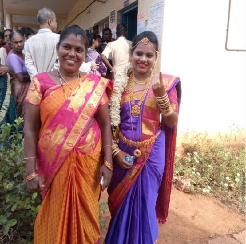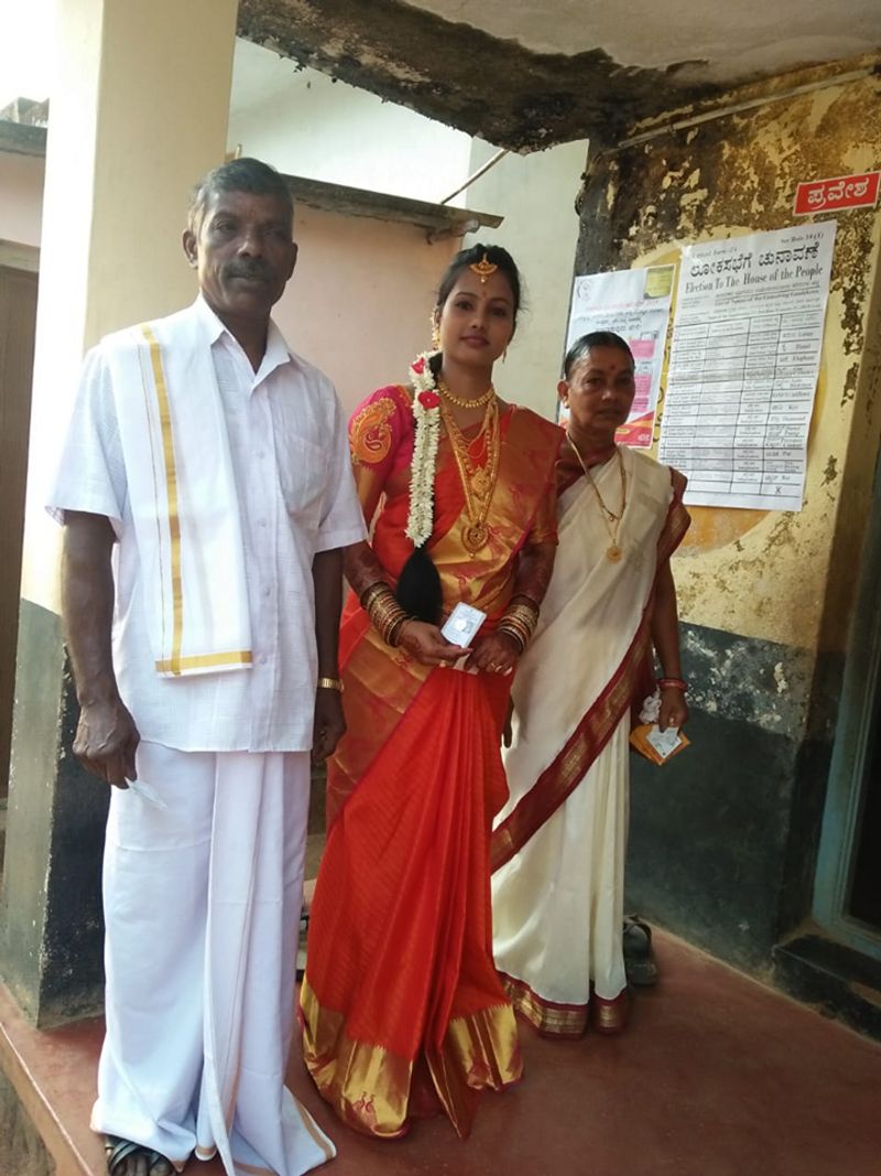 ಧಾರೆ ಮಂಟಪಕ್ಕೆ ತೆರಳುವ ಮೊದಲು ವಧುಗಳು ಮತಗಟ್ಟೆಗೆ ಬಂದು ಮತ ಚಲಾಯಿಸಿ ಗಮನ ಸೆಳೆದರು. ಮಾಂಗಲ್ಯ ಭಾಗ್ಯಕ್ಕೂ ಮುನ್ನ ಮತದಾನ ಭಾಗ್ಯ ಮಾಡಿದ್ದಾರೆ.