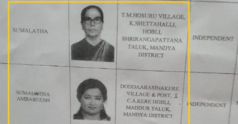 ಎವಿಎಂನಲ್ಲಿ ಸುಮಲತಾ ಅಂಬರೀಶ್ ಕ್ರಮ ಸಂಖ್ಯೆ 20 ಇದೆ. ಕ್ರಮ ಸಂಖ್ಯೆ 19ರಲ್ಲೂ ಇನ್ನೋರ್ವ ಸುಮಲತಾ ಎನ್ನುವರು ಇದ್ದಾರೆ. ಅಷ್ಟೇ ಅಲ್ಲದೇ ಕ್ರಮ ಸಂಖ್ಯೆ 21ರಲ್ಲೂ ಮತ್ತೋರ್ವ ಸುಮಲತಾ ಹೆಸರಿದೆ.