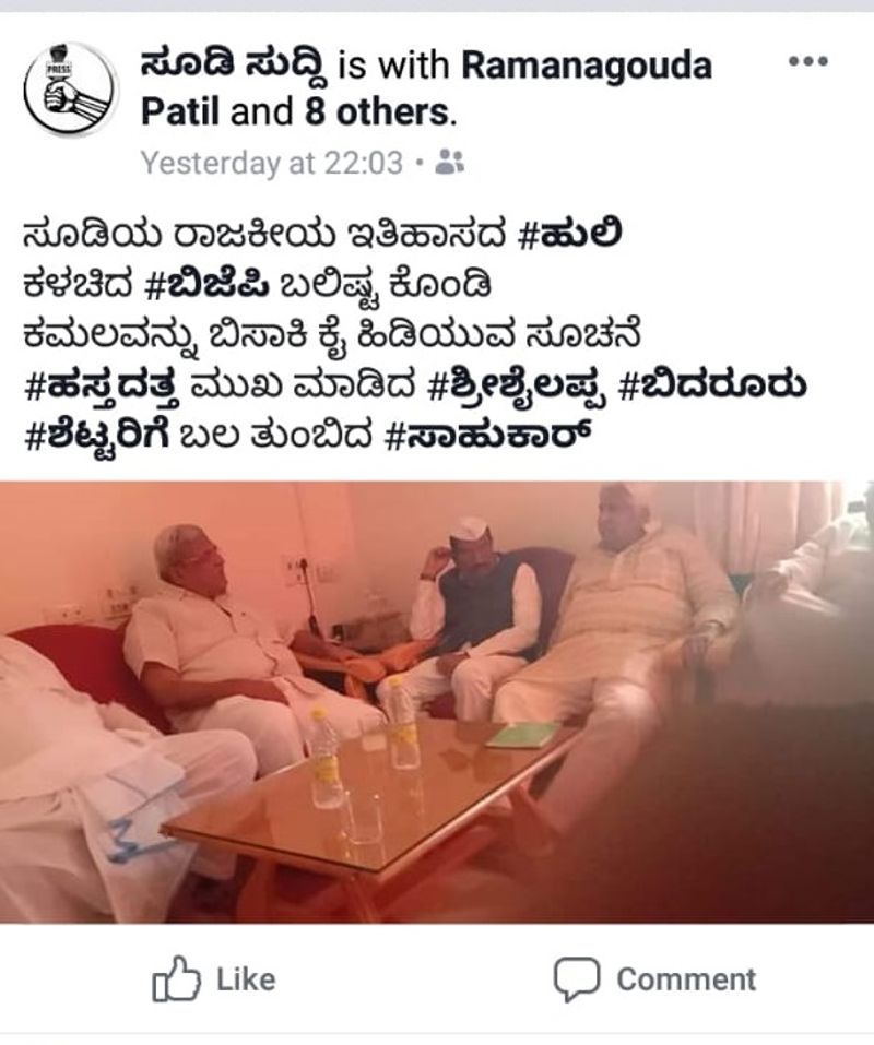 ಈಗಾಗಲೇ ಕರ್ನಾಟಕ ಕಾಂಗ್ರೆಸ್ ಪ್ರಚಾರ ಸಮಿತಿ ಅಧ್ಯಕ್ಷ ಎಚ್.ಕೆ.ಪಾಟೀಲ್ ಅವರು ಶ್ರೀಶೈಲಪ್ಪ ಜತೆ ಒಂದು ಸುತ್ತಿನ ಮಾತುಕತೆ ನಡೆಸಿದ್ದು, ಆ ಫೋಟೋ ಸಾಮಾಜಿಕ ಜಾಲತಾಣದಲ್ಲಿ ಹರಿದಾಡುತ್ತಿವುದು ಇದಕ್ಕೆ ಮತ್ತಷ್ಟು ಪುಷ್ಠಿ ನೀಡಿದಂತಾಗಿದೆ.