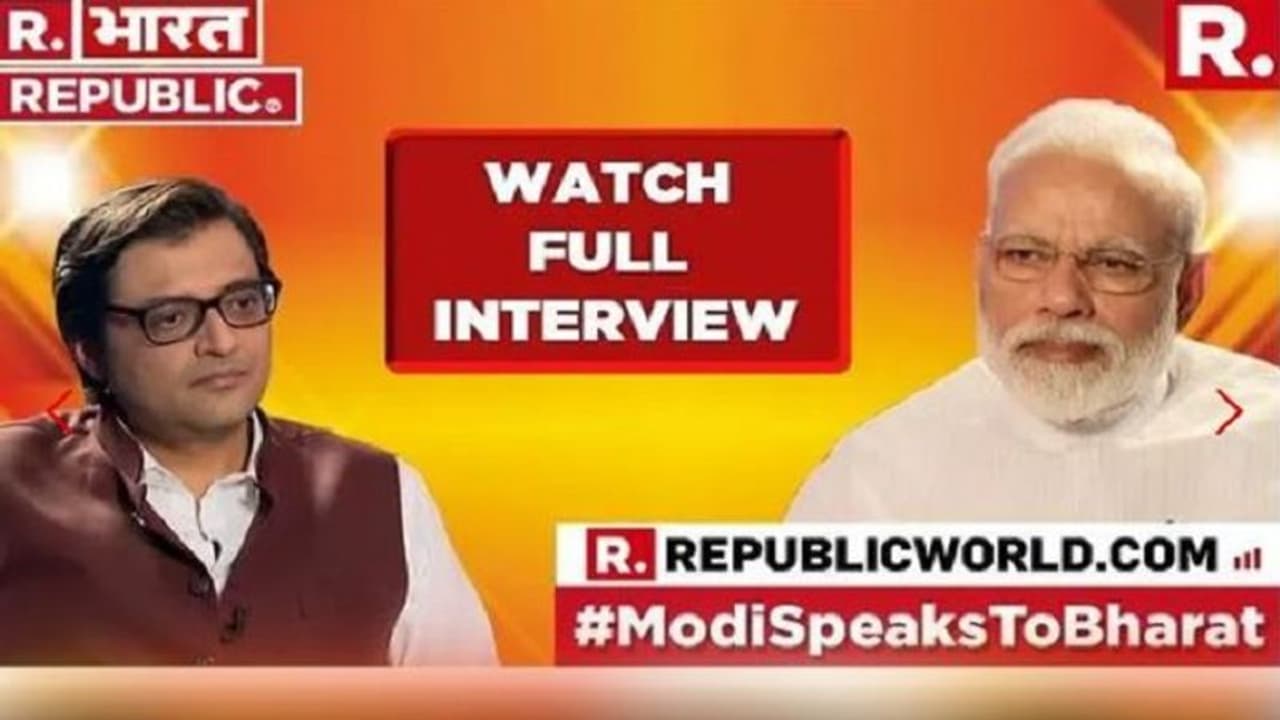 ಮುಂಬೈ(ಮಾ.29): ಲೋಕಸಭೆ ಚುನಾವಣೆಗೆ ಇನ್ನೇನು ಕ್ಷಣಗಣನೆ ಶುರುವಾಗಿರುವಂತೆಯೇ ಪ್ರಧಾನಿ ನರೇಂದ್ರ ಮೋದಿ, ಪತ್ರಕರ್ತ ಮತ್ತು ರಿಪಬ್ಲಿಕ್ ಮಿಡಿಯಾ ನೆಟವರ್ಕ್ಸ್ ಪ್ರಧಾನ ಸಂಪಾದಕ ಅರ್ನಬ್ ಗೋಸ್ವಾಮಿ ಅವರಿಗೆ ಸಂದರ್ಶನ ನೀಡಿದ್ದಾರೆ.