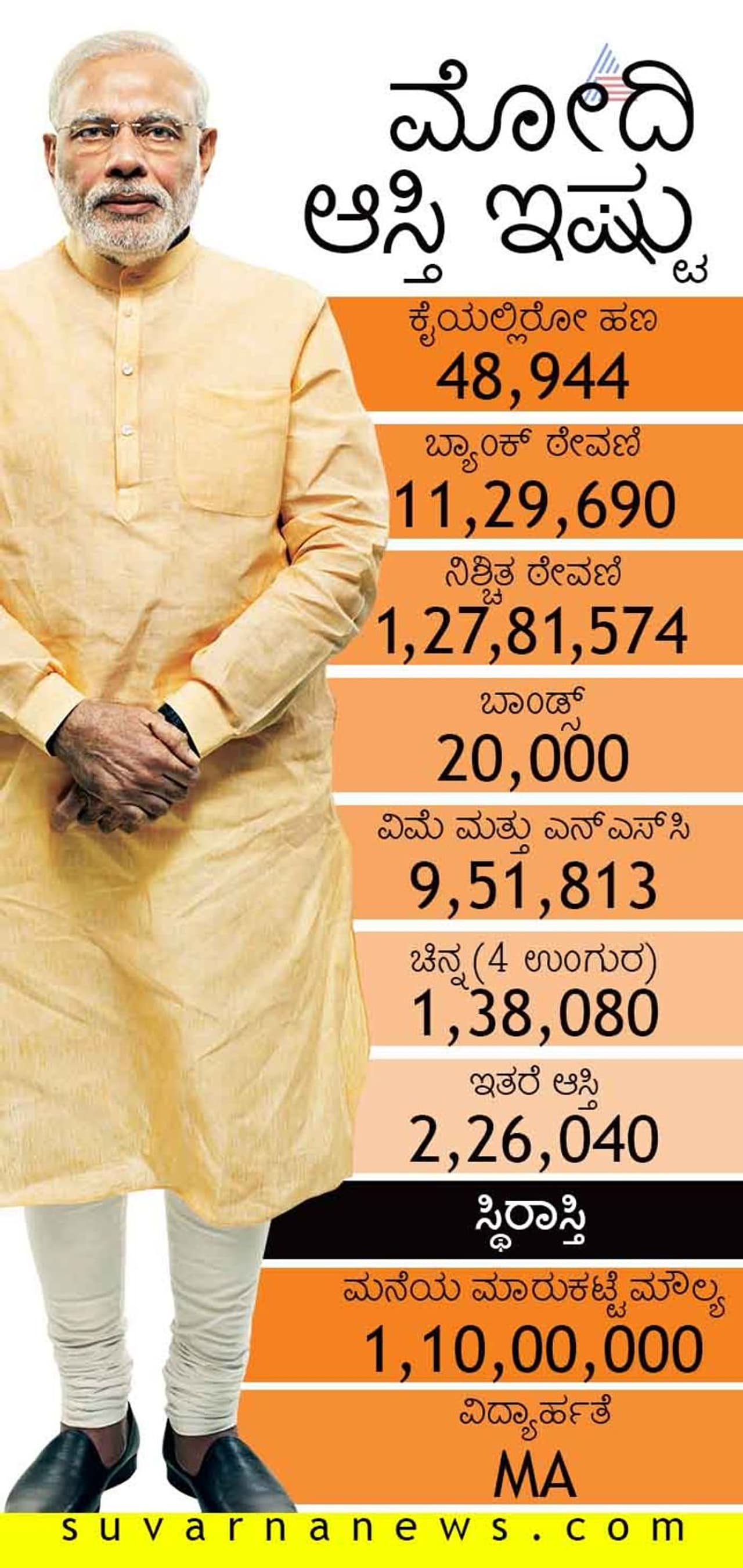 ಪ್ರಧಾನಿ ಮೋದಿ ಸಲ್ಲಿಸಿರುವ ವಿವರ ಇಂತಿದೆ: