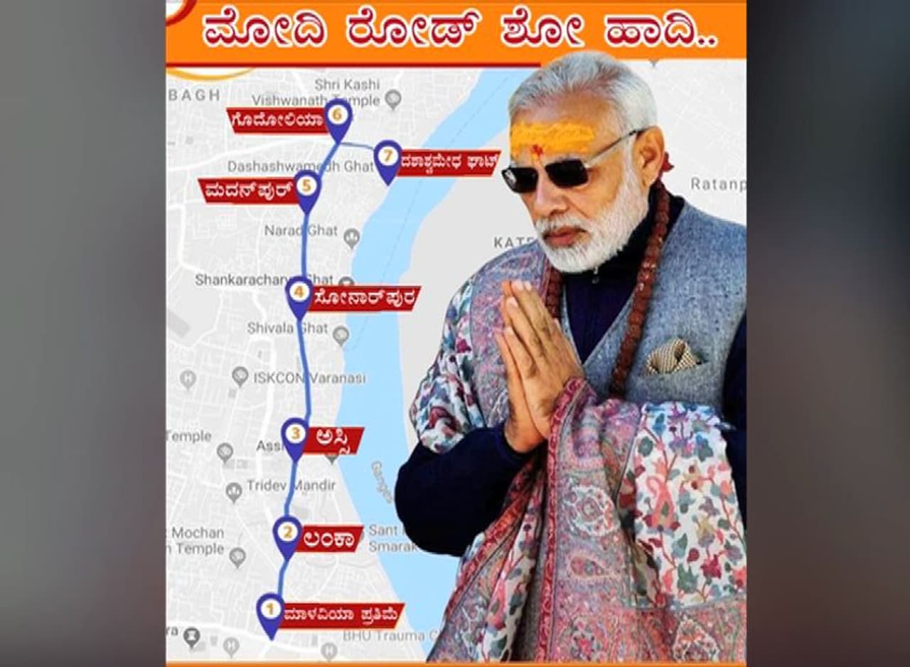 ಒಟ್ಟು 7 ಕಿ.ಮೀ ಉದ್ದದ ರಸ್ತೆಯಲ್ಲಿ 240 ನಿಮಿಷದ ಮಹಾಯಾತ್ರೆ ನಡೆಸಿದ ಪ್ರಧಾನಿ ಮೋದಿ, ಬನಾರಸ್ ವಿವಿ, ಲಂಕಾ ಗೇಟ್, ಅಸ್ಸಿ, ಸೋನಾರ್ಪುರ್, ಮದನ್ ಪುರ್, ಗೋದಾಲಿಯಾ ಹಾಗೂ ದಶಾಶ್ವಮೇಧ ಘಾಟ್’ವರೆಗೆ ರೋಡ್ ಶೋ ನಡೆಸಿದರು.