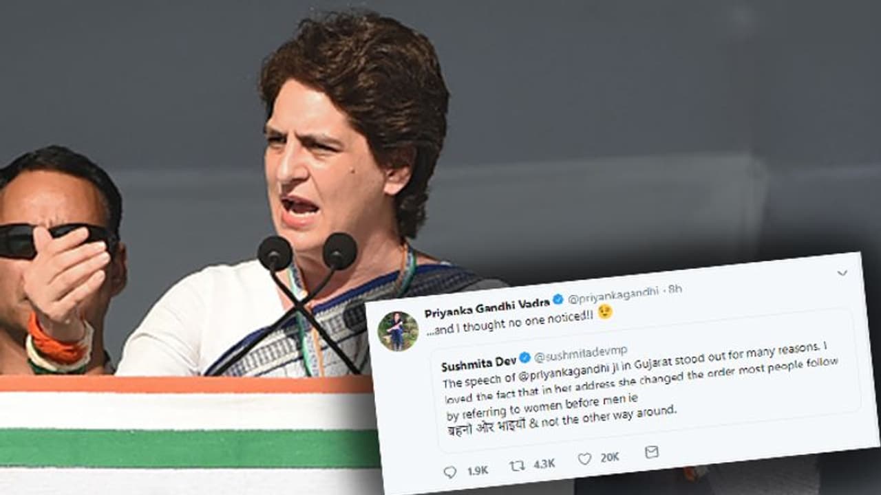 ಮೊದಲು ಈ ವಿಚಾರ ಅನೇಕರ ಗಮನಕ್ಕೆ ಬಂದಿರಲಿಲ್ಲ. ಆದರೆ ಅಸ್ಸಾಂ ಸಂಸದೆ ಸುಶ್ಮಿತಾ ದೇವ್ ಪ್ರಿಯಾಂಕಾ ಗಾಂಧಿಯ ಭಾಷಣವನ್ನು ಉಲ್ಲೇಖಿಸುತ್ತಾ 'ಗುಜರಾತ್ ನಲ್ಲಿ ಪ್ರಿಯಾಂಕಾ ಗಾಂಧಿ ನೀಡಿದ್ದ ಭಾಷಣ ಅತ್ಯಂತ ಪರಿಣಾಮಕಾರಿಯಾಗಿತ್ತು. ಅವರು ಪುರುಷರಿಗಿಂತ ಮೊದಲು ಮಹಿಳೆಯರಿಗೆ ಆದ್ಯತೆ ನೀಡಿದ್ದು ನನಗೆ ಬಹಳ ಇಷ್ಟವಾಯ್ತು' ಎಂದು ಟ್ವೀಟ್ ಮಾಡಿದ್ದಾರೆ. ಇದಾದ ಬಳಿಕ ಈ ವಿಡಿಯೋ ಬಹಳಷ್ಟು ವೈರಲ್ ಆಗಿದೆ.