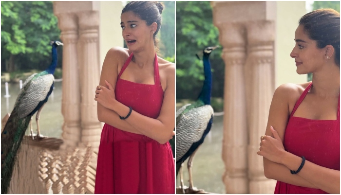 ಅನನ್ಯಾ ಪಾಂಡೆ ರಾಜಸ್ಥಾನದ ಸುಂದರ ತಾಣವೊಂದರಲ್ಲಿ ಫೋಟೋಶೂಟ್ ಮಾಡಿಸಿಕೊಳ್ಳುತ್ತಿದ್ದರು. ಅವರು ಕ್ಯಾಮೆರಾಗೆ ಪೋಸ್ ನೀಡುತ್ತಿದ್ದಾಗ, ಯಾರೂ ಊಹಿಸದ ರೀತಿಯಲ್ಲಿ ರಾಷ್ಟ್ರಪಕ್ಷಿ ನವಿಲೊಂದು ಅವರ ಬಳಿ ಬಂದಿದೆ. ಇದ್ದಕ್ಕಿದ್ದಂತೆ ತನ್ನ ಹತ್ತಿರ ಬಂದ ನವಿಲನ್ನು ನೋಡಿ ಅನನ್ಯಾ ಬೆಚ್ಚಿಬಿದ್ದಿದ್ದಾರೆ. ಈ ಕ್ಷಣವನ್ನು ಅವರು ತಮ್ಮ ಇನ್ಸ್ಟಾಗ್ರಾಮ್ನಲ್ಲಿ ಹಂಚಿಕೊಂಡು, "ನನ್ನ ಜೀವನದ ಅತ್ಯಂತ ಭಯಾನಕ ಕ್ಷಣ" ಎಂದು ತಮಾಷೆಯಾಗಿ ಬರೆದುಕೊಂಡಿದ್ದಾರೆ. ಮೊದಲ ಫೋಟೋದಲ್ಲಿ ಅವರು ಗಾಬರಿಯಿಂದ ನವಿಲಿನಿಂದ ದೂರ ಸರಿಯುತ್ತಿರುವ ದೃಶ್ಯವಿದೆ.