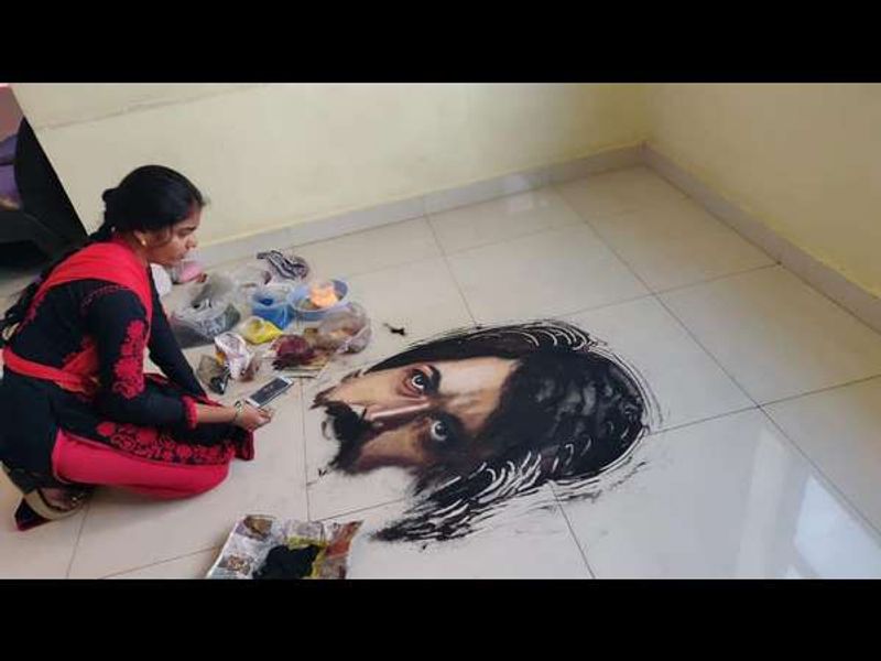 ಸಾಮಾನ್ಯ ಸ್ಕೆಚ್ ಪೆನ್, ಪೆನ್ಸಿಲ್ ನಲ್ಲಿ ಡ್ರಾಯಿಂಗ್ ಮಾಡುವುದನ್ನುನೋಡಿದ್ದೇವೆ. ಈ ಕಲಾವಿದೆ ಸ್ವಲ್ವ ಭಿನ್ನ. ನೆಲದ ಮೇಲೆ ಬಣ್ಣಗಳನ್ನು ಬಳಸಿ ರಾಕಿ ಭಾಯ್ ಚಿತ್ರ ಬಿಡಿಸಿದ್ದಾರೆ. ಈ ಡ್ರಾಯಿಂಗ್ ಸೋಷಿಯಲ್ ಮೀಡಿಯಾದಲ್ಲಿ ವೈರಲ್ ಆಗುತ್ತಿದೆ.