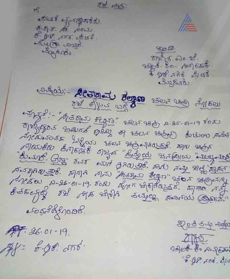 ‘ಸೀತಾರಾಮ ಕಲ್ಯಾಣ ಚಲನಚಿತ್ರ ದಿ.25-01-2019ರಂದು ರಾಜ್ಯಾದ್ಯಂತ ಬಿಡುಗಡೆ ಆಗಿದ್ದು, ಈ ಚಲನಚಿತ್ರವು ಕುಟುಂಬ ಸಮೇತ ನೋಡುವಂತಹ ಒಳ್ಳೆಯ ಚಲನಚಿತ್ರವಾಗಿರುತ್ತದೆ. ಹಾಗೂ ಚಿತ್ರದ ನಾಯಕರು ಕರ್ನಾಟಕ ರಾಜ್ಯದ 'ಹೆಮ್ಮೆಯ ಜಯಪ್ರಿಯ ಮುಖ್ಯಮಂತ್ರಿ ಕುಮಾರ್ ಅಣ್ಣರವರ ಮಗ ಆಗಿರುತ್ತಾರೆ. ಹಾಗೂ ನಮ್ಮ ಜಿಲ್ಲೆ ಹಾಸನದವರಾಗಿರುತ್ತಾರೆ. ಹಾಗಾಗಿ ನಾನು 'ಸೀತಾರಾಮ ಕಲ್ಯಾಣ ಚಲನಚಿತ್ರವನ್ನು ನೋಡಲು ದಿ.26-01-2019ರಂದು ಹೋಗಬೇಕಾಗಿರುತ್ತದೆ. ಹಾಗಾಗಿ ನನ್ನ ಕರ್ತವ್ಯಕ್ಕೆ ರಜೆ ನೀಡಬೇಕಾಗಿ ತಮ್ಮಲ್ಲಿ ಸವಿನಯ ಪ್ರಾರ್ಥನೆ'.
