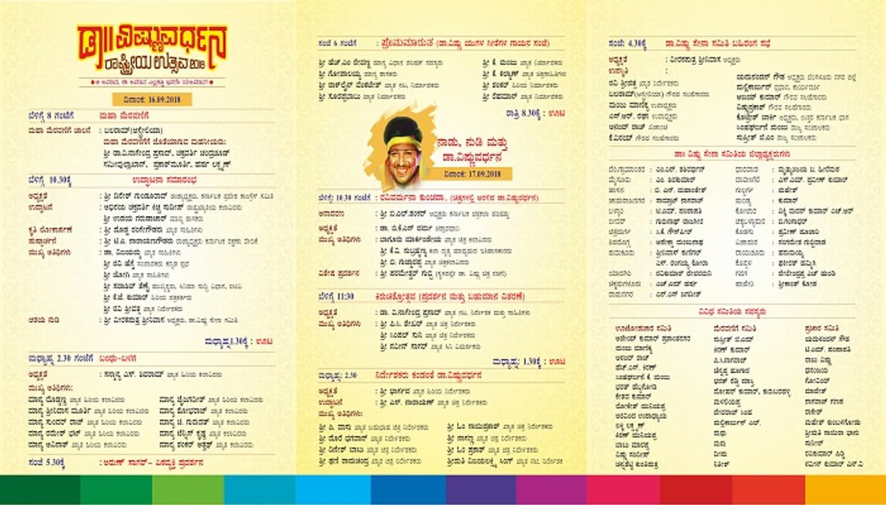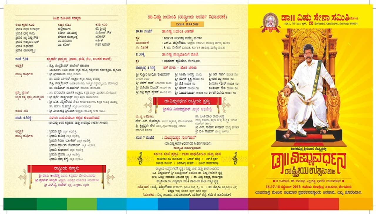 ಸಂಜೆ 4.30ಕ್ಕೆ ಡಾ. ವಿಷ್ಣು ಸೇನಾ ಸಮಿತಿ ಬಹಿರಂಗ ಸಭೆ ನಡೆಯಲಿದೆ. ಸೆ. 17 ರಂದು ಸಂಜೆ 5ಕ್ಕೆ ಕನ್ನಡವೇ ನಮ್ಮಮ್ಮ ಹೆಸರಿನಲ್ಲಿ ನಾಡು ನುಡಿಗೆ ಜಾಗೃತಿ ಕಾರ್ಯಕ್ರಮ ನಡೆಯಲಿದ್ದು ಹಿರಿಯ ಸಾಹಿತಿ ಚಂದ್ರಶೇಖರ್ ಪಾಟೀಲ್, ಶ್ರೀರಾಮಲು, ಡಾ.ಮನು ಬಳಿಗಾರ್, ಪದ್ಮಾ ಶೇಖರ್, ವಸುಂಧರಾ ಭೂಪತಿ ಪಾಲ್ಗೊಳ್ಳಲಿದ್ದಾರೆ.