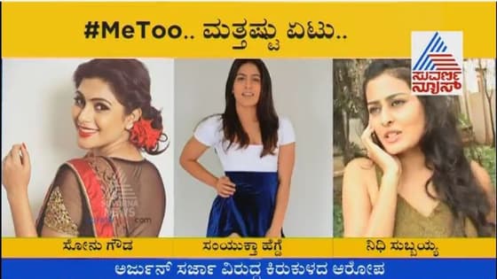 ಮೀ ಟೂ ಆರೋಪ ಮಾಡುತ್ತಿರುವ ಶೃತಿ ಹರಿಹರನ್ ಗೆ ಸ್ಯಾಂಡಲ್ ವುಡ್ ನಟಿಯರಾದ ನಿಧಿ ಸುಬ್ಬಯ್ಯ, ಸಂಯುಕ್ತಾ ಹೆಗಡೆ, ಸೋನು ಗೌಡ ಸಪೋರ್ಟ್ ಮಾಡಿದ್ದಾರೆ. ನಟ ಅರ್ಜುನ್ ಸರ್ಜಾ ವಿರುದ್ಧ ಶೃತಿ ಹರಿಹರನ್ ಲೈಂಗಿಕ ಕಿರುಕುಳ ಆರೋಪ ಮಾಡಿದ್ರು. ಇವರಿಗೆ ಸ್ಯಾಂಡಲ್ ವುಡ್ ನ ಅನೇಕರು ಸಾಥ್ ನೀಡಿದ್ದಾರೆ.