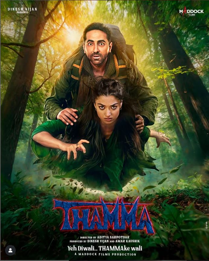 ರಶ್ಮಿಕಾ ಮಂದಣ್ಣ ನಟನೆಯ ಮತ್ತೊಂದು ಹಿಂದಿ ಸಿನಿಮಾ "ಥಮ'ದ ಟ್ರೈಲರ್, ಟೀಸರ್ ಇದೀಗ ಬಿಡುಗಡೆ ಆಗಿದ್ದು, ಸಿನಿಮಾದ ಬಿಡುಗಡೆ ದಿನಾಂಕ ಸಹ ಘೋಷಣೆ ಆಗಿದೆ. ರಶ್ಮಿಕಾ ಮಂದಣ್ಣ ಇದೇ ಮೊದಲ ಬಾರಿಗೆ ಹಾರರ್ ಸಿನಿಮಾ ಒಂದರಲ್ಲಿ ನಟಿಸಿದ್ದಾರೆ. ಆಯುಷ್ಮಾನ್ ಖುರಾನಾ ನಾಯಕನಾಗಿ ನಟಿಸಿರುವ ಈ ಸಿನಿಮಾನಲ್ಲಿ ರಶ್ಮಿಕಾ ಮಂದಣ್ಣ ನಾಯಕಿ. ಖ್ಯಾತ ನಟ ನವಾಜುದ್ಧೀನ್ ಸಿದ್ಧಿಖಿ ವಿಲನ್ ಆಗಿ ಅಬ್ಬರಿಸಿದ್ದಾರೆ.