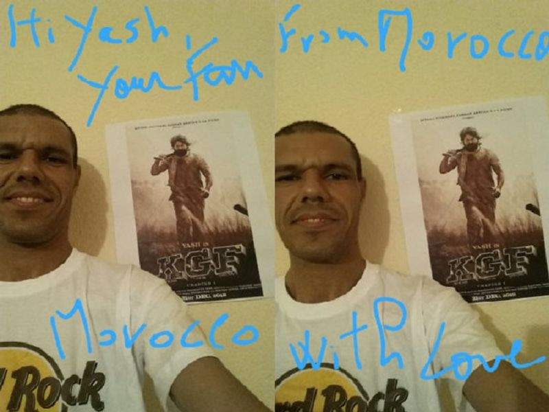 ಈ ಚಿತ್ರ ಉತ್ತರ ಆಫ್ರಿಕಾದ ಹುಡುಗನನ್ನೂ ಮೋಡಿ ಮಾಡುವಲ್ಲಿ ಯಶಸ್ವಿಯಾಗಿದೆ ಎಂದರೆ ಚಿತ್ರ ಅದೆಷ್ಟರ ಮಟ್ಟಿಗೆ ಕಮಾಲ್ ಮಾಡಿರಬಹುದು ಎಂಬುದನ್ನು ಊಹಿಸಬಹುದು. ಉತ್ತರ ಆಫ್ರಿಕಾದ ಮೊರೊಕ್ಕೂದಲ್ಲಿಯೂ ಯಶ್ಗೆ ಅಭಿಮಾನಿ ಹುಟ್ಟಿಕೊಂಡಿದ್ದಾನೆ. ತನ್ನ ರೂಮಿನಲ್ಲಿಯೇ ಕೆಜಿಎಫ್ ಯಶ್ ಲುಕ್ ಫೋಟೋ ಅಂಟಿಸಿಕೊಂಡು ಸೆಲ್ಫೀ ತೆಗೆದುಕೊಂಡಿದ್ದಾನೆ. ಸೋಷಿಯಲ್ ಮೀಡಿಯಾದಲ್ಲಿ ಹಂಚಿಕೊಂಡ ಈ ಪೋಟೋ ವೈರಲ್ ಆಗುತ್ತಿದೆ.