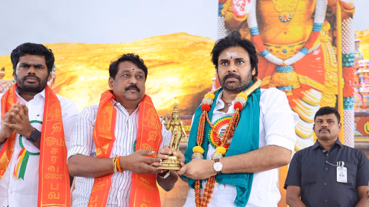ಪವನ್ ಕಲ್ಯಾಣ್ ಈ ಸಭೆಗೆ ಹಾಜರಾದಾಗ ಮುರುಗನ್ ಭಕ್ತರಂತೆ ಕಾಣಿಸಿಕೊಂಡರು. ಪವನ್ “ಜಾತ್ಯತೀತತೆ, ಹಿಂದೂ ದೇವರುಗಳು, ಕ್ರಿಶ್ಚಿಯನ್, ಮುಸ್ಲಿಂ, ಧರ್ಮಗಳು, ಹಿಂದೂ ಧರ್ಮ” ಮುಂತಾದ ವಿಷಯಗಳ ಬಗ್ಗೆ ಮಾತನಾಡಿದರು. ಅಣ್ಣಾಮಲೈ ಮಾಡಿದ ಹೇಳಿಕೆಗಳು ಸಹ ರಾಜಕೀಯ ಕಾವು ಹೆಚ್ಚಿಸಿದವು.
