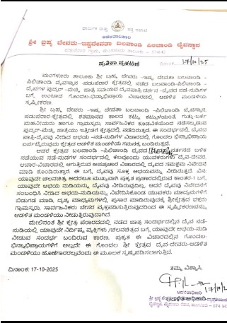 ಪೆರಾರ ಕ್ಷೇತ್ರದ ಆಡಳಿತ ಮಂಡಳಿ ಬಿಡುಗಡೆ ಮಾಡಿರುವ ಪ್ರೆಸ್ನೋಟ್