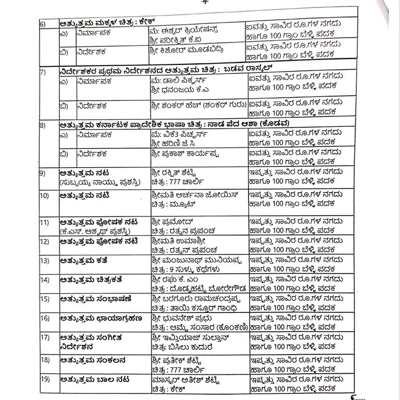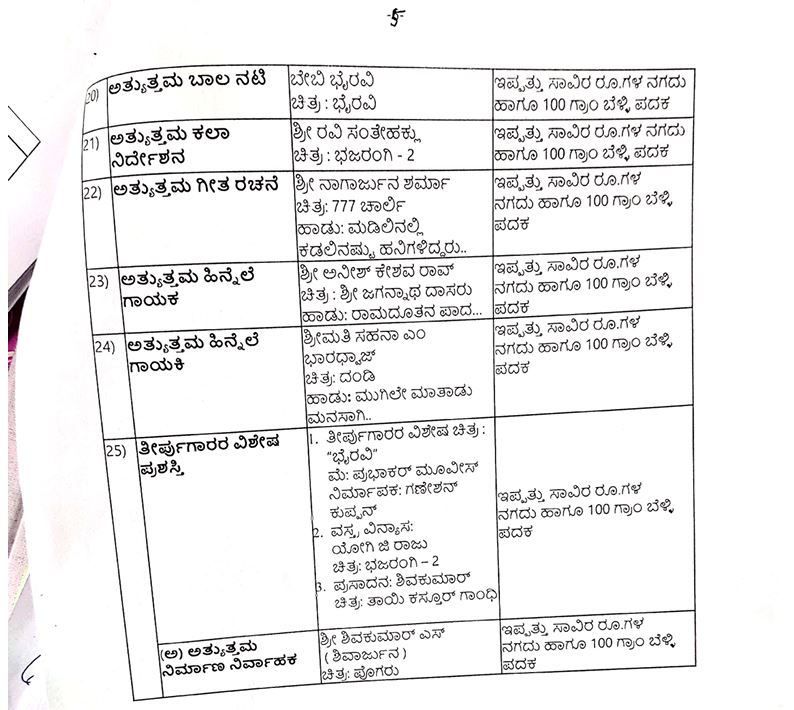 ಪ್ರಶಸ್ತಿ ಪಟ್ಟಿಯ ಸಂಪೂರ್ಣ ವಿವರಗಳು
