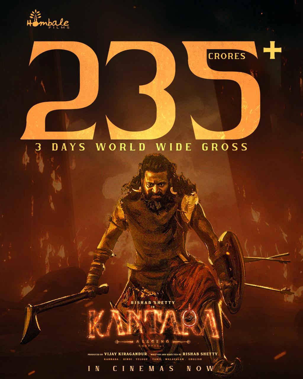 ರಿಷಬ್ ಶೆಟ್ಟಿ 'ಕಾಂತಾರ ಚಾಪ್ಟರ್ 1' 3 ದಿನದಲ್ಲಿ ಬರೋಬ್ಬರಿ 235 ಕೋಟಿ ಕಲೆಕ್ಷನ್?