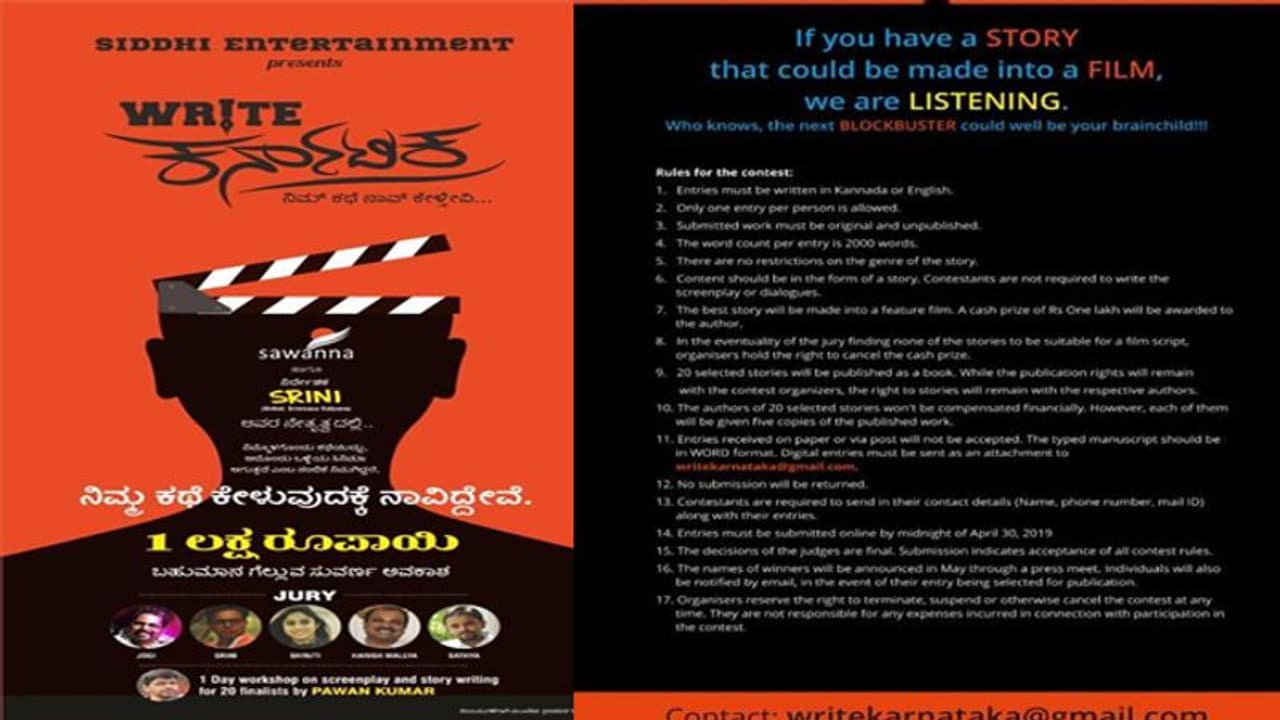 ಗಾಂಧಿನಗರದ ಜನ ಕನ್ನಡದಲ್ಲಿ ಸಿನಿಮಾ ಆಗುವಂತಹ ಕತೆಗಳ ಕೊರತೆ ಇದೆ ಅಂತಾರೆ. ಮತ್ತೊಂದೆಡೆ ನಮ್ ಕತೆ ಸಿನಿಮಾ ಆಗ್ಬೇಕಿತ್ತು ಅಂತ ಕನಸು ಕಾಣುವ ಲೇಖಕರಿದ್ದಾರೆ. ಅವರಿಬ್ಬರಿಗೂ ಸುವರ್ಣಾವಕಾಶವೊಂದು ಈಗ ಬಂದಿದೆ. ಕತೆ ಇಲ್ಲ ಎನ್ನುವವರಿಗೆ ಸಿನಿಮಾ ಆಗುವಂತಹ ಕತೆ ಕೊಡಲು, ನಮ್ ಕತೆ ಸಿನಿಮಾ ಆಗ್ಬೇಕು ಎನ್ನುವವರಿಂದ ಕತೆ ಕೇಳಲು ನಿರ್ದೇಶಕ ಶ್ರೀನಿ ಹೊಸ ಯೋಜನೆ ತಂದಿದ್ದಾರೆ