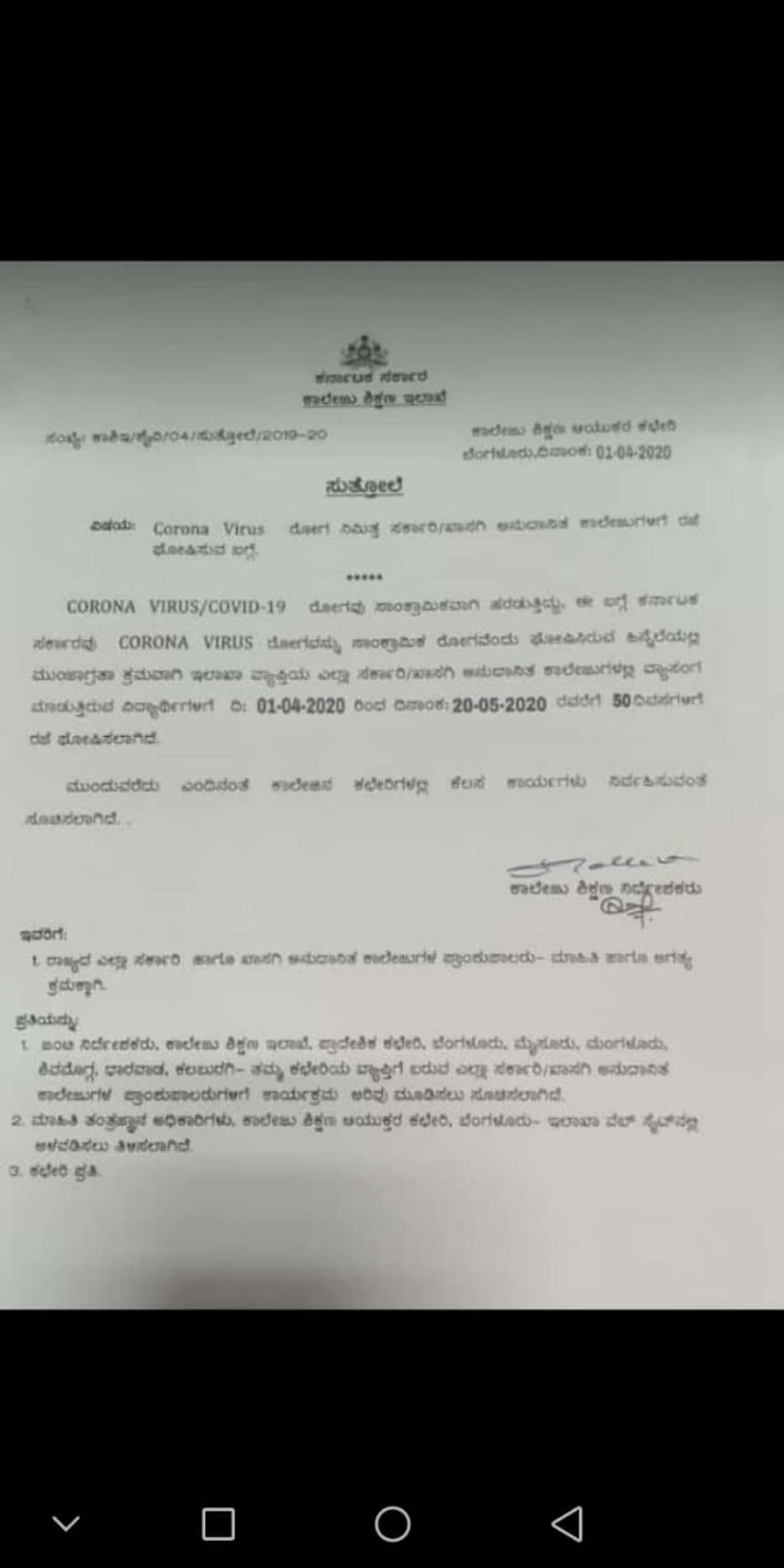 ಈ ಬಗ್ಗೆ ಪತ್ರಿಕಾ ಪ್ರಕಟಣೆ ಹೊರಡಿಸಿರುವ ಕಾಲೇಜು ಶಿಕ್ಷಣ ಇಲಾಖೆ, ವಿದ್ಯಾರ್ಥಿಗಳು, ಬೋಧಕ ಮತ್ತು ಬೋಧಕೇತರ ಸಿಬ್ಬಂದಿಯ ರಜೆಯನ್ನು ಈ ಮೊದಲು ಮಾರ್ಚ್ 31ರ ವರೆಗೆ ನೀಡಲಾಗಿತ್ತು. ಇದೀಗ ಇದನ್ನು ಏಪ್ರಿಲ್ 14ರ ವರಗೆ ರಜೆಯನ್ನು ವಿಸ್ತರಿಸಿರುವುದು ನಿಜ.