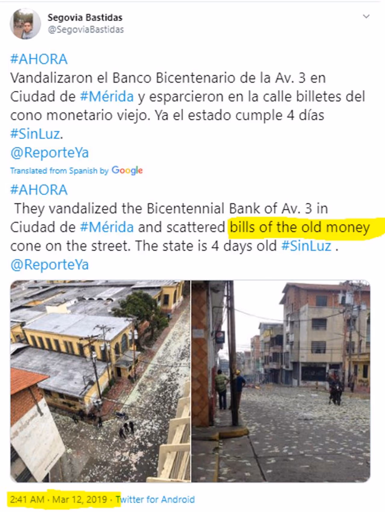 ವಾಸ್ತವವಾಗಿ ಇವು 2019ರಲ್ಲಿ ವೆನಿಜುವೆಲಾದಲ್ಲಿ ತೆಗೆದ ಫೋಟೋಗಳು. ಅಲ್ಲಿ ಹಳೆಯ ಕರೆನ್ಸಿ ರದ್ದು ಮಾಡಿ, ಹೊಸ ಕರೆನ್ಸಿ ಜಾರಿಗೆ ತಂದಾಗ ಮೌಲ್ಯ ಕಳೆದುಕೊಂಡ ಹಳೆಯ ಕರೆನ್ಸಿಗಳನ್ನು ಜನ ಬೀದಿ, ಬೀದಿಯಲ್ಲಿ ಚೆಲ್ಲಿದ್ದರು. ಅದೇ ವೇಳೆ ವೆನಿಜುವೆಲಾದ ಜನರು ಬ್ಯಾಂಕನ್ನು ಲೂಟಿ ಮಾಡಿ, ತಮ್ಮ ದೇಶದ ಹಣಕ್ಕೆ ಮೌಲ್ಯವಿಲ್ಲ ಎನ್ನುವುದನ್ನು ತೋರಿಸಲು ಹಣಕ್ಕೆ ಬೆಂಕಿ ಇಟ್ಟಿದ್ದರು. ಅನೇಕ ಪತ್ರಕರ್ತರು ಇದನ್ನೇ ಬರೆದು ಟ್ವೀಟ್ ಮಾಡಿದ್ದು, ಟ್ವೀಟ್ಗಳು ಸಹ ಲಭ್ಯವಾಗಿವೆ.