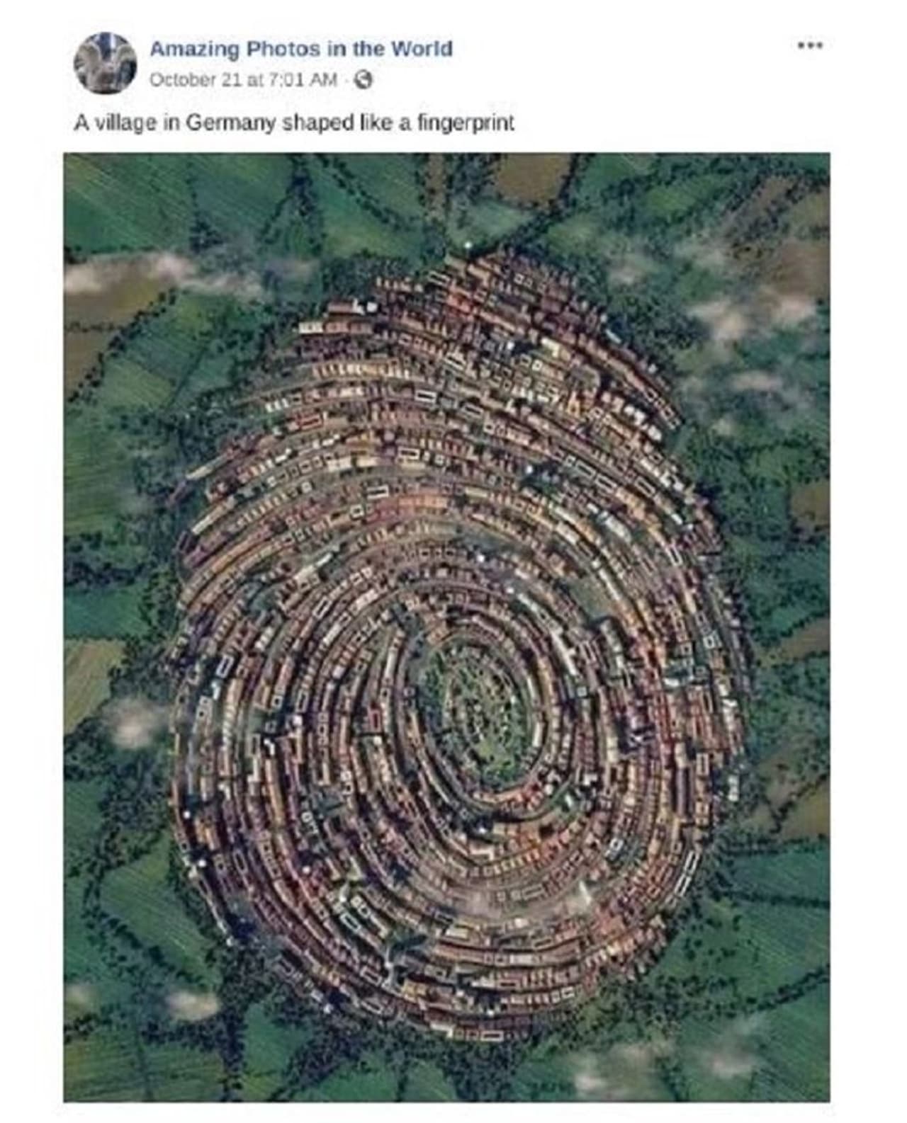 ಫಿಂಗರ್ ಪ್ರಿಂಟ್ನಂತೆ ಕಾಣುವ ಹಳ್ಳಿಯೊಂದರ ಗೂಗಲ್ ಲೊಕೇಶನ್ನ ಏರಿಯಲ್ ವ್ಯೂ ಫೋಟೋವನ್ನು ಸಾಮಾಜಿಕ ಜಾಲತಾಣಗಳಲ್ಲಿ ಪೋಸ್ಟ್ ಮಾಡಿ, ಫಿಂಗರ್ ಪ್ರಿಂಟ್ ಶೇಪ್ ಇರುವ ಹಳ್ಳಿಯೊಂದು ಜಪಾನಿನಲ್ಲಿ ಇದೆ, ಅದರೆ ಹೆಸರು ಎರ್ಬಿಲ್ ಎಂದು ಹೇಳಲಾಗಿದೆ.