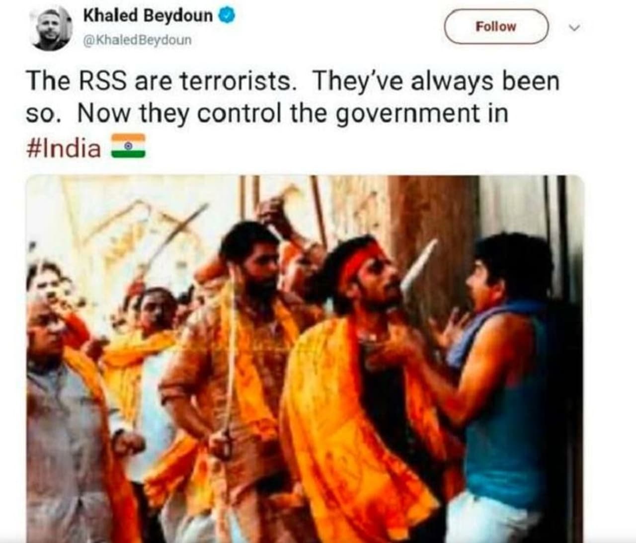 ಮತ್ತೆ ಕೆಲವರು ಇದೇ ರೀತಿಯ ಫೋಟೋವನ್ನು ಪೋಸ್ಟ್ ಮಾಡಿ, ‘ಭಾರತದಲ್ಲಿ ಆರ್ಎಸ್ಎಸ್ ಭಯೋತ್ಪಾದಕತೆಯನ್ನು ನಿಲ್ಲಿಸಿ’ ಎಂದು ಬರೆದುಕೊಂಡಿದ್ದಾರೆ. ಈ ಫೋಟೋಗಳು ಟ್ವೀಟರ್ನಲ್ಲಿ ಭಾರಿ’ ವೈರಲ್ ಆಗುತ್ತಿವೆ.