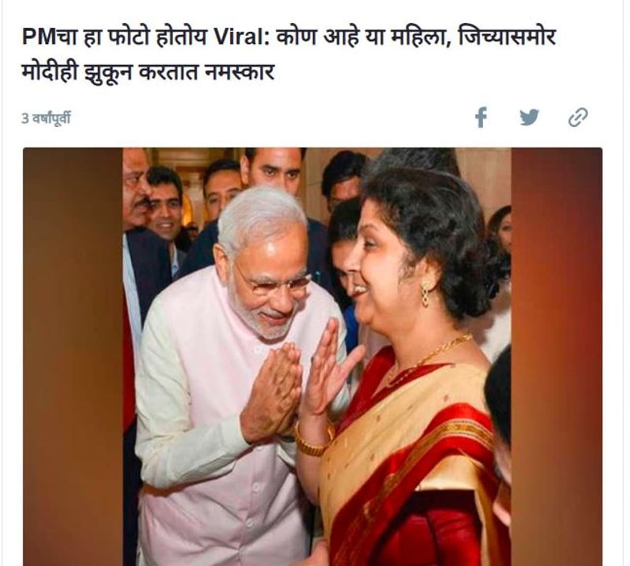 ಖ್ಯಾತ ಉದ್ಯಮಿ ಗೌತಮ್ ಅದಾನಿ ಅವರ ಪತ್ನಿಗೆ ಪ್ರಧಾನಿ ನರೇಂದ್ರ ಮೋದಿ ತಲೆಬಾಗಿ ನಮಸ್ಕರಿಸುತ್ತಿದ್ದಾರೆಂದು ಹೇಳಲಾದ ಫೋಟೋವೊಂದು ಸಾಮಾಜಿಕ ಜಾಲತಾಣಗಳಲ್ಲಿ ವೈರಲ್ ಆಗಿದೆ. ನಿಜನಾ ಈ ಸುದ್ದಿ?