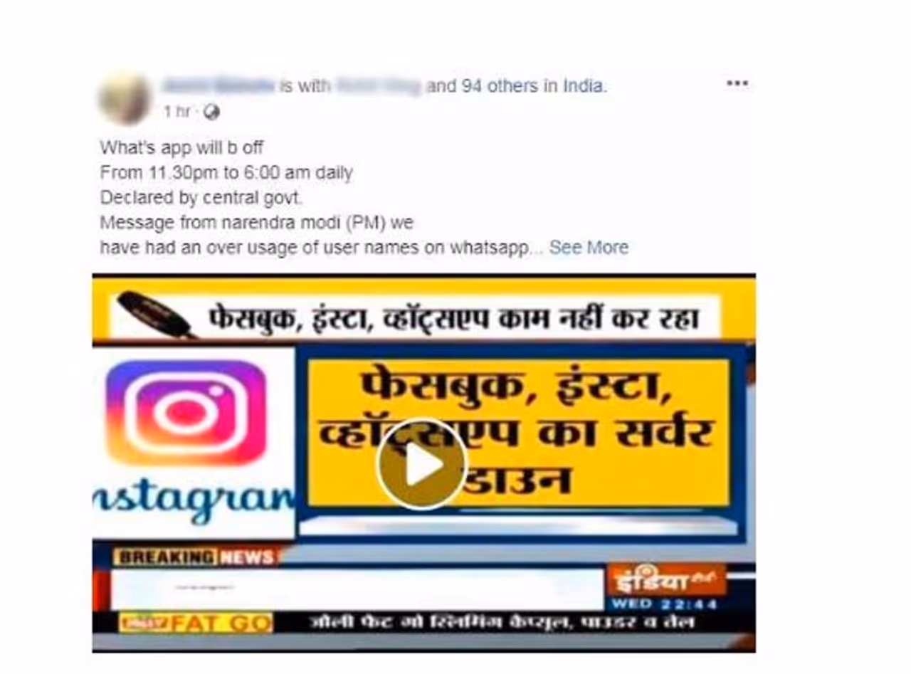 ಇಂಡಿಯಾ ಟಿವಿ ಹೆಸರಿನಲ್ಲಿ ಈ ವಿಡಿಯೋ ವೈರಲ್ ಆಗುತ್ತಿದೆ. ಆದರೆ ನಿಜಕ್ಕೂ ಕೇಂದ್ರ ಸರ್ಕಾರ ರಾತ್ರಿ11:30 ರಿಂದ ಬೆಳಿಗ್ಗೆ 6 ಗಂಟೆಯ ವರೆಗೆ ವಾಟ್ಸ್ಆ್ಯಪನ್ನು ನಿರ್ಬಂಧಿಸಿದೆಯೇ ಎಂದು ಪರಿಶೀಲಿಸಿದಾಗ ವೈರಲ್ ಸುದ್ದಿ ಸುಳ್ಳು ಎಂಬುದು ಸ್ಪಷ್ಟವಾಗಿದೆ.