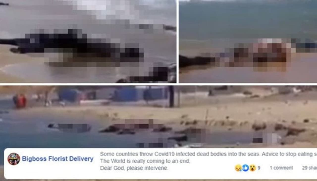 ಸದ್ಯ ಇದೇ ವಿಡಿಯೋವನ್ನು ಪೋಸ್ಟ್ ಮಾಡಿ, ಕೊರೋನಾ ವೈರಸ್ ಸೋಂಕು ತಗುಲಿ ಮೃತಪಟ್ಟವರನ್ನು ಸಮುದ್ರಕ್ಕೆ ಎಸೆಯಲಾಗುತ್ತಿದೆ ಎಂದು ಸುಳ್ಳುಸುದ್ದಿ ಹಬ್ಬಿಸಲಾಗುತ್ತಿದೆ. ಈ ಹಿಂದೆ ಕೋಳಿ ಮಾಂಸ ಸೇವಿಸಿದರೆ ಕೊರೋನಾ ತಗುಲುತ್ತದೆ ಎಂದು ವದಂತಿ ಹಬ್ಬಿಸಲಾಗಿತ್ತು.