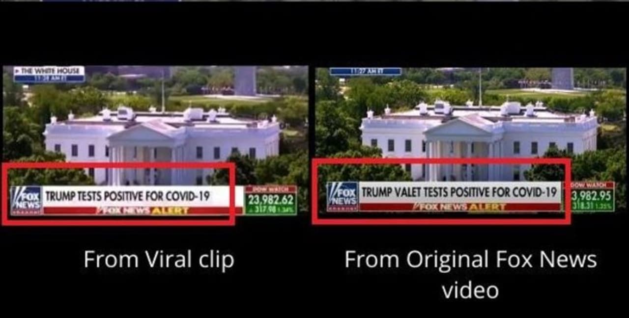 ಆದರೆ ಈ ಸುದ್ದಿಯ ಸತ್ಯಾಸತ್ಯ ಪರಿಶೀಲಿಸಿದಾಗ, ಇದು ಸುಳ್ಳು ಸುದ್ದಿ, ಟ್ರಂಪ್ಗೆ ಕೊರೋನಾ ಸೋಂಕು ತಗಲಿಲ್ಲ ಎಂಬುದು ಖಚಿತವಾಗಿದೆ. ವೈರಲ್ ವಿಡಿಯೋದ ಮೂಲ ವಿಡಿಯೋ ಯುಟ್ಯೂಬ್ನಲ್ಲಿ ಲಭ್ಯವಿದ್ದು, ಟ್ರಂಪ್ ಅವರ ಅಧಿಕೃತ ನಿವಾಸ ವೈಟ್ಹೌಸ್ನಲ್ಲಿ ಕೆಲಸ ಮಾಡುವ ಟ್ರಂಪ್ ಅಂಗಸೇವಕರಿಗೆ ಕೊರೋನಾ ದೃಢಪಟ್ಟಿರುವುದಾಗಿ ಫಾಕ್ಸ್ ನ್ಯೂಸ್ ಮೇ 7, 2020ರಂದು ವರದಿ ಮಾಡಿತ್ತು.