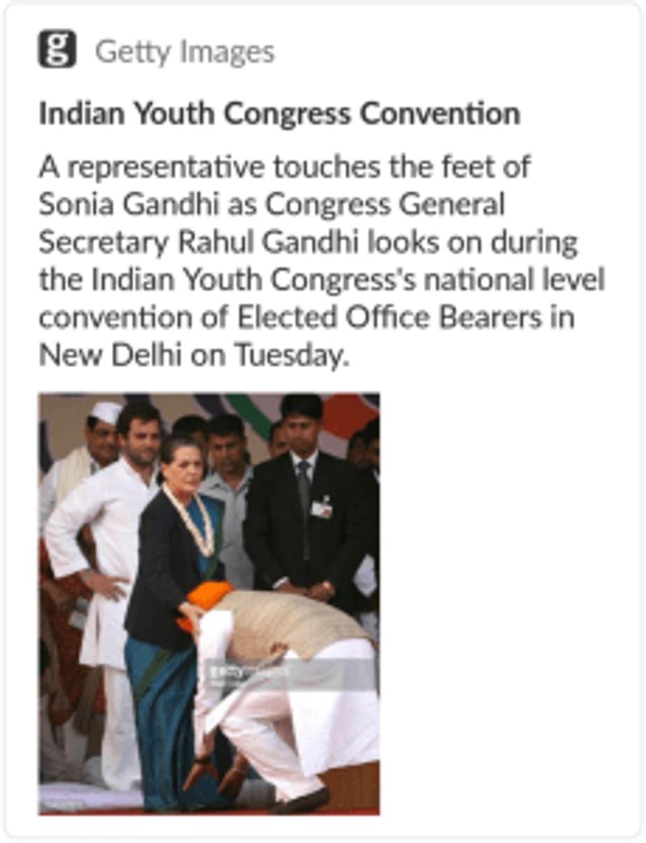 ಆದರೆ ನಿಜಕ್ಕೂ ಮಾಜಿ ಪ್ರಧಾನಿ ಮನಮೋಹನ್ ಸಿಂಗ್ ಕಾಂಗ್ರೆಸ್ ಅಧ್ಯಕ್ಷೆ ಸೋನಿಯಾ ಕಾಲಿಗೆರಗಿ ನಮಸ್ಕರಿಸಿದರೇ ಎಂದು ಪರಿಶೀಲಿಸಿದಾಗ ಇದು ಸುಳ್ಳು ಸುದ್ದಿ, ಫೋಟೋದಲ್ಲಿ ಸೋನಿಯಾ ಗಾಂಧಿ ಕಾಲಿಗೆರಗಿರುವ ವ್ಯಕ್ತಿ ಸಿಂಗ್ ಅಲ್ಲ ಎಂದು ತಿಳಿದುಬಂದಿದೆ. ರಿವರ್ಸ್ ಇಮೇಜ್ನಲ್ಲಿ ಪರಿಶೀಲಿಸಿದಾಗ 2011ರ ಭಾರತೀಯ ಯುವ ಕಾಂಗ್ರೆಸ್ ಸಮಾವೇಶದ ಫೋಟೋ ಇದು ಎಂದು ತಿಳಿದುಬಂದಿದೆ. ಈ ಸಮಾವೇಶದಲ್ಲಿ ಕಾಂಗ್ರೆಸ್ ಕಾರ್ಯಕರ್ತರೊಬ್ಬರು ಸೋನಿಯಾ ಗಾಂಧಿ ಕಾಲಿಗೆ ಬಿದ್ದು ನಮಸ್ಕರಿಸಿದ್ದರು. ಇದೇ ಸಮಾರಂಭದ ಇನ್ನೊಂದು ಫೋಟೋದಲ್ಲಿ ಮನಮೋಹನ್ ಸಿಂಗ್ ನೀಲಿ ಬಣ್ಣದ ಪೇಟಾ ಧರಿಸಿರುವುದು ಕಂಡುಬಂದಿದೆ. ಹಾಗಾಗಿ ಫೋಟೋದಲ್ಲಿ ಕಾಲಿಗೆ ನಮಸ್ಕರಿಸುತ್ತಿರುವ ವ್ಯಕ್ತಿ ಸಿಂಗ್ ಅಲ್ಲ ಎಂಬುದು ಸ್ಪಷ್ಟ.