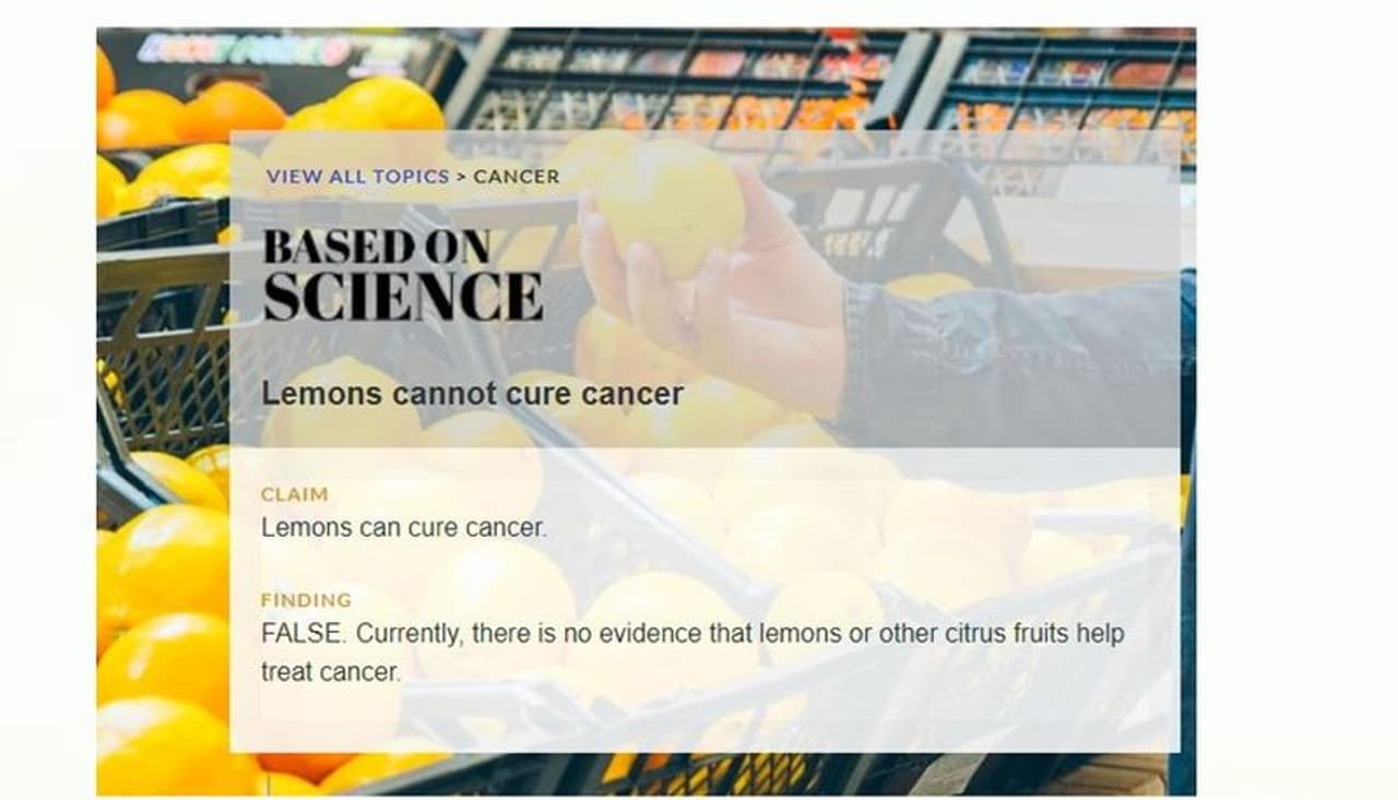 Fact Check: ಸಿಟ್ರಸ್ ಹಣ್ಣು ಅಥವಾ ನಿಂಬೆಯ ಕ್ಯಾನ್ಸರ್ ಗುಣಪಡಿಸುವ ಸಾಮರ್ಥ್ಯಕ್ಕೆ ಸಂಬಂಧಿಸಿದ ಯಾವುದೇ ಪುರಾವೆಗಳು ಅಥವಾ ಸಂಶೋಧನೆಗಳನ್ನು ಇವೆಯೇ ಎಂದು ಕಂಡುಹಿಡಿಯಲು ಏಷ್ಯಾನೆಟ್ ಸುವರ್ಣ ನ್ಯೂಸ್ ಸರಳವಾದ ಗೂಗಲ್ ಟೆಕ್ಸ್ಟ್ ಸರ್ಚ್ ನಡೆಸಿತು.