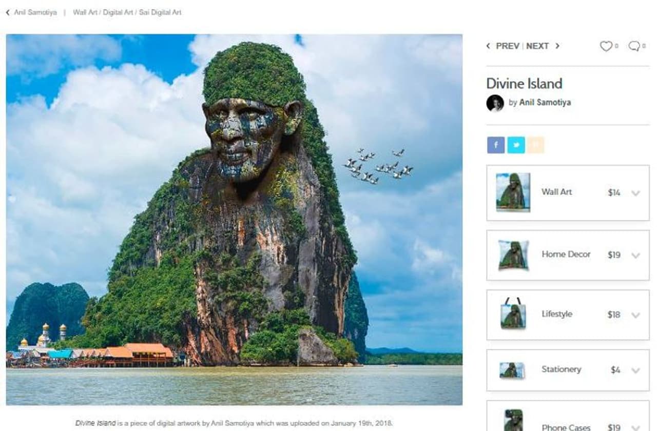 ಅಲ್ಲದೇ ನಾವು ಪಿಕ್ಸೆಲ್ ಡಾಟ್ ಕಾಮ್ (pixels.com) ನಲ್ಲಿ ವೈರಲಾಗಿರುವ ಸಾಯಿಬಾಬಾರಂತಹ ಪರ್ವತದ ಚಿತ್ರವನ್ನು ಕಂಡುಕೊಂಡಿದ್ದೇವೆ. ಇಲ್ಲಿ ಲಭ್ಯವಿರುವ ಮಾಹಿತಿಯ ಪ್ರಕಾರ, ಇದನ್ನು ಡಿಜಿಟಲ್ ಕಲಾವಿದ ಅನಿಲ್ ಸಮೋಟಿಯಾ (Anil Samotia) ರಚಿಸಿದ್ದಾರೆ.