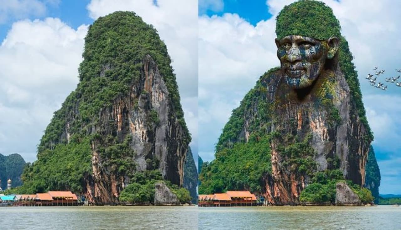 ನಿಜವಾದ ಪರ್ವತದ ಫೋಟೋ ಥೈಲ್ಯಾಂಡ್ನ ಫಾಂಗ್ ನ್ಗಾ ಪ್ರಾಂತ್ಯದ ಅವೊ ಫಾಂಗ್ ನ್ಗಾ ರಾಷ್ಟ್ರೀಯ ಉದ್ಯಾನವನದ ( Ao Phang Nga National Park) ಸಮೀಪವಿರುವ ದ್ವೀಪವಾಗಿದೆ. ಕೆಳಗಿನ ಕೊಲಾಜ್ನಲ್ಲಿ ಎರಡು ಚಿತ್ರಗಳ ನಡುವಿನ ವ್ಯತ್ಯಾಸವನ್ನು ಕಾಣಬಹುದು.