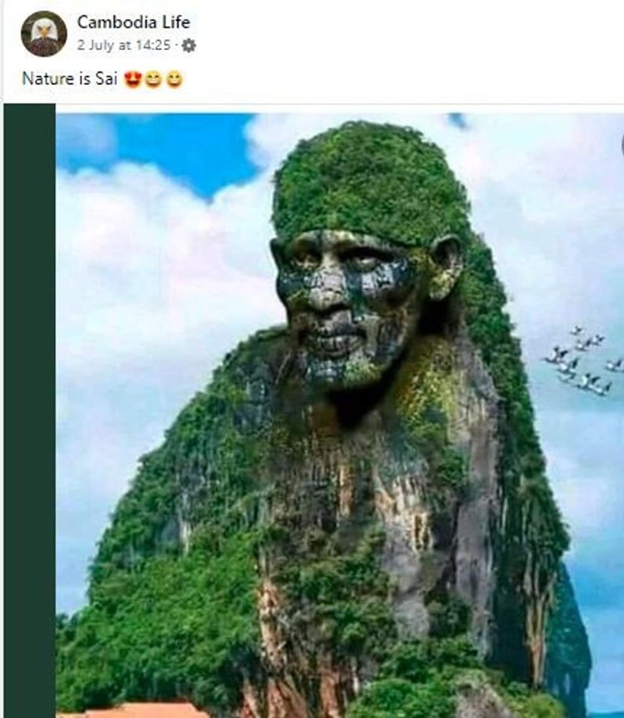 Claim: ಸಾಮಾಜಿಕ ಜಾಲತಾಣ ಬಳಕೆದಾರರೊಬ್ಬರು (Cambodia Life) ಈ ಫೋಟೋವನ್ನು ಹಂಚಿಕೊಂಡಿದ್ದು "ಪ್ರಕೃತಿಯೇ ಸಾಯಿ" (Nature is Sai) ಎಂಬ ಶೀರ್ಷಿಕೆಯೊಂದಿಗೆ ಹಂಚಿಕೊಂಡಿದ್ದಾರೆ.