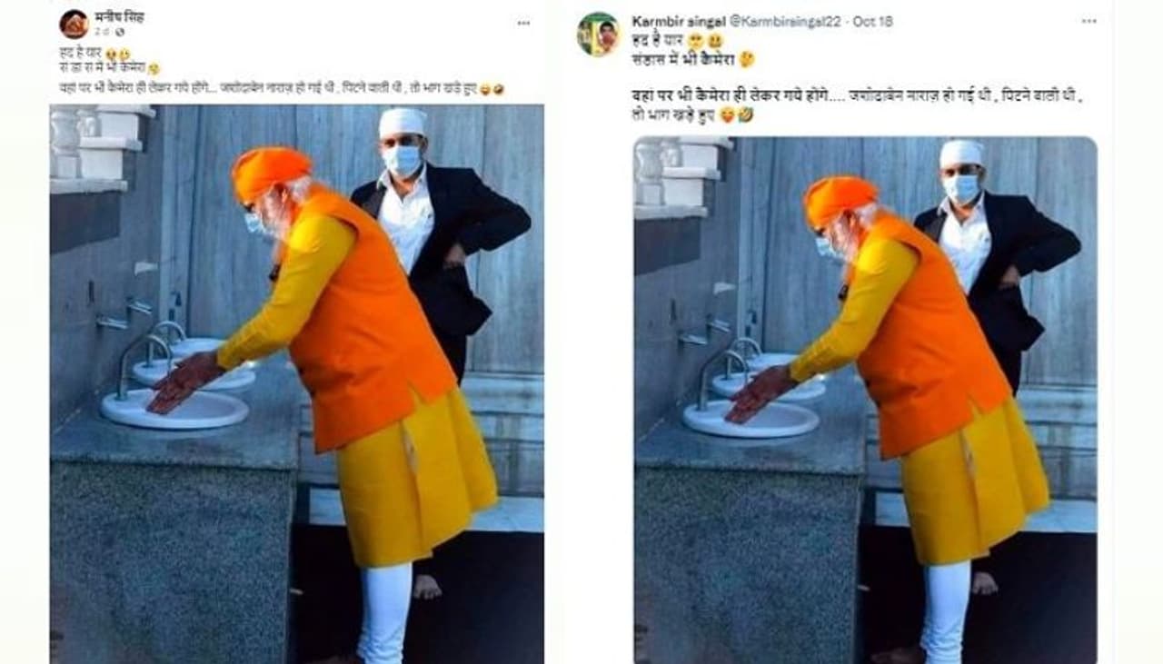 PM Modi Washing Hands inside toilet Viral photo Fact Check: ಪ್ರಧಾನಿ ಮೋದಿ ವಾಶ್ಬೇಸಿನ್ನಲ್ಲಿ ಕೈತೊಳೆಯುತ್ತಿರುವ ಚಿತ್ರವೊಂದು ಸಾಮಾಜಿಕ ಜಾಲತಾಣಗಳಲ್ಲಿ ವೈರಲ್ ಆಗಿದೆ.