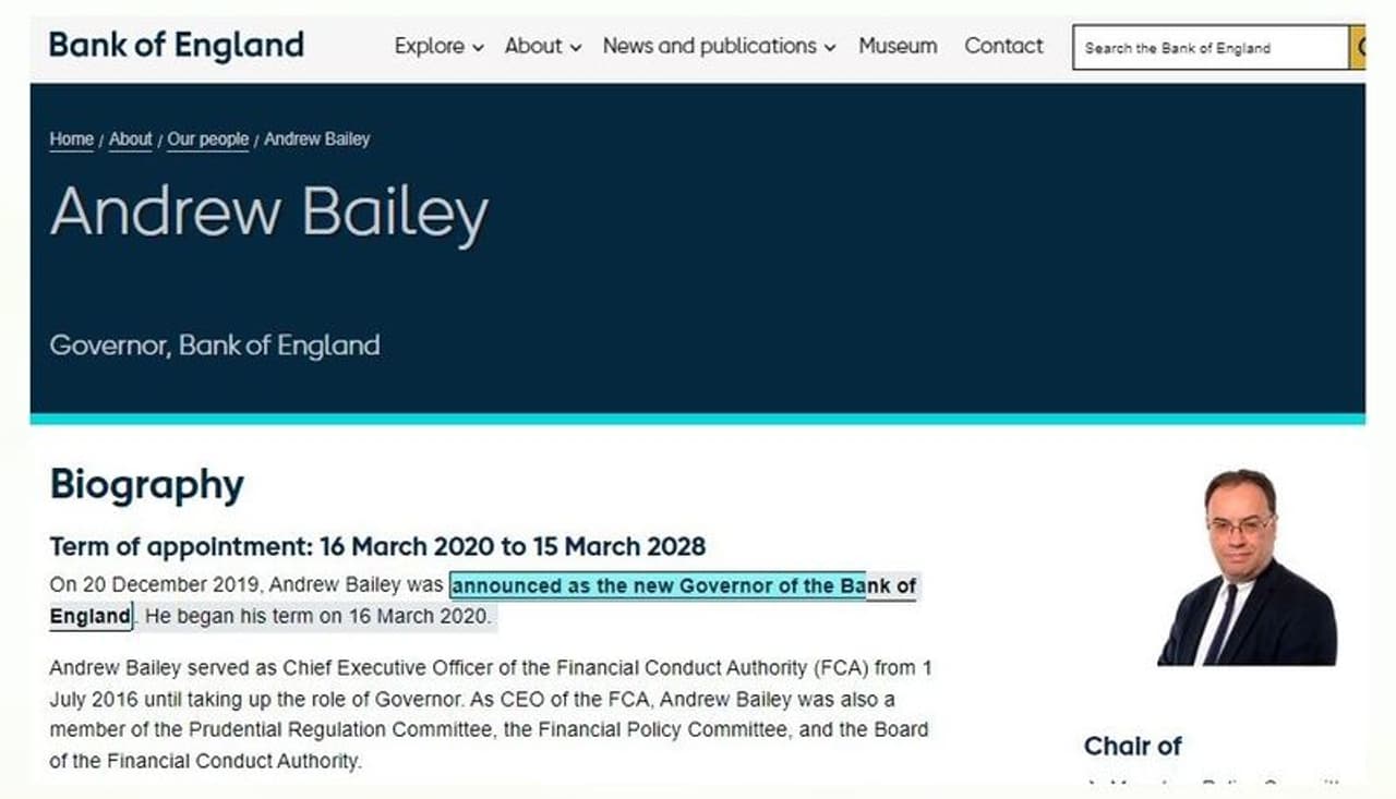 ಬ್ಯಾಂಕಿನ ವೆಬ್ಸೈಟ್ ಆಂಡ್ರ್ಯೂ ಬೈಲಿಯವರನ್ನು ಗವರ್ನರ್ ಎಂದು ಪಟ್ಟಿ ಮಾಡಿದೆ. ಅವರನ್ನು ಮಾರ್ಚ್ 16, 2020 ರಂದು ನೇಮಿಸಲಾಯಿತು ಮತ್ತು ಅವರ ಗವರ್ನರ್ ಅವಧಿಯು ಮಾರ್ಚ್ 15, 2028 ರಂದು ಕೊನೆಗೊಳ್ಳಲಿದೆ. ಅಲ್ಲದೇ ಬ್ಯಾಂಕ್ನ ವೆಬ್ಸೈಟ್ನಲ್ಲಿ ಉಲ್ಲೇಖಿಸಿದಂತೆ ಈ ಹಿಂದಿನ ಗವರ್ನರ್ಗಳ ಪಟ್ಟಿಯಲ್ಲಿ ರಾಜನ್ ಅವರ ಹೆಸರು ಕಂಡುಬಂದಿಲ್ಲ.