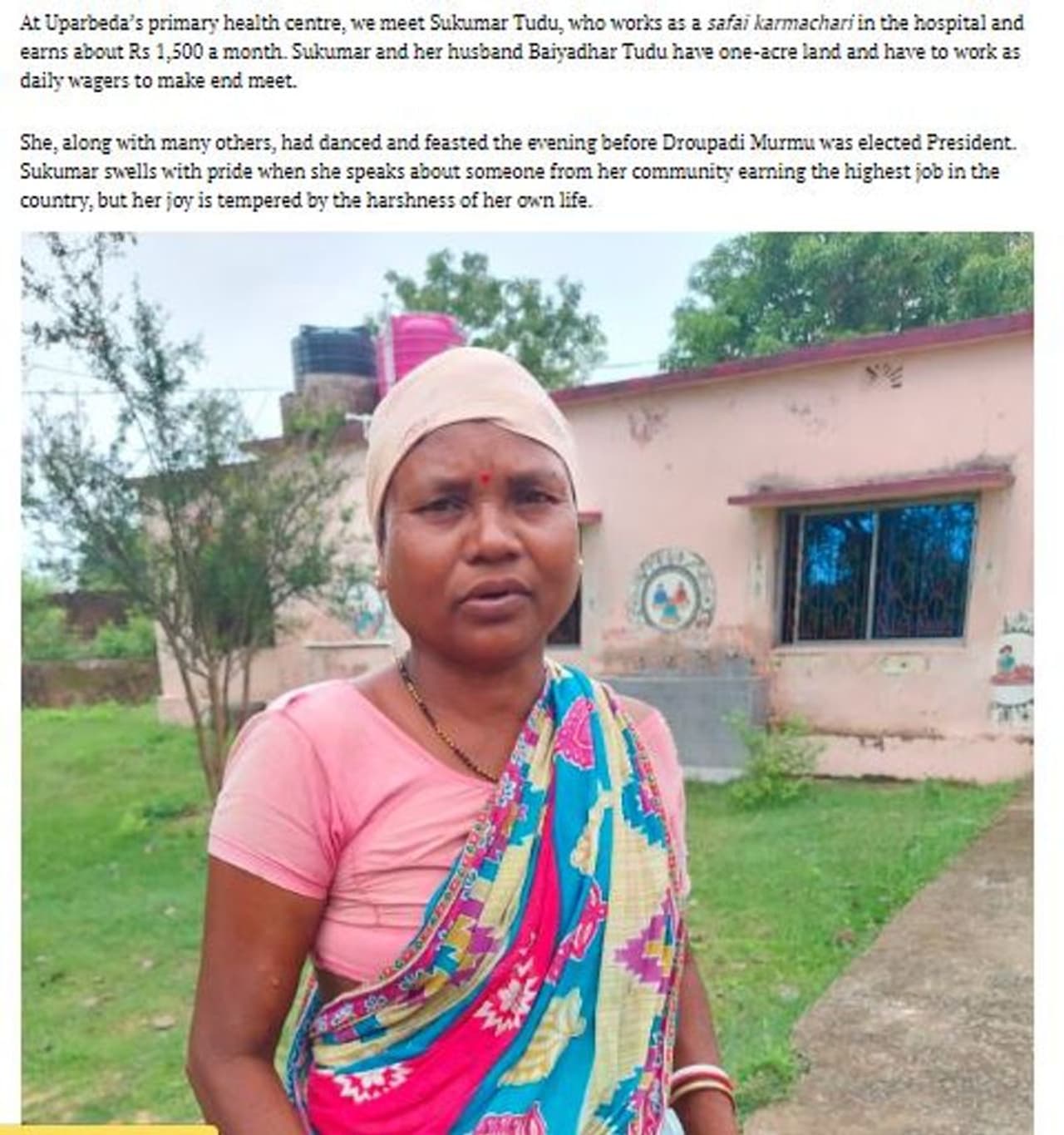 Step 2: ಇನ್ನು ಎರಡನೇ ಫೋಟೋ ಇತ್ತೀಚೆಗೆ ರಾಷ್ಟ್ರಪತಿಯಾಗಿ ಅಧಿಕಾರ ಸ್ವೀಕರಿಸಿರುವ ದ್ರೌಪದಿ ಮುರ್ಮು ಅವರದ್ದಲ್ಲ. ಇದು ಮುರ್ಮು ಅವರು ಹುಟ್ಟಿದ ಹಳ್ಳಿಯಾದ ಒಡಿಶಾದ ಉಪರಬೇಡ ಗ್ರಾಮದ ಆಸ್ಪತ್ರೆಯೊಂದರಲ್ಲಿ ಸ್ಚಚ್ಛತಾ ಕಾರ್ಯಕರ್ತೆ ಸುಕುಮಾರ್ ತುಡು ಅವರದ್ದು. ಸುಕುಮಾರ್ ರಾಷ್ಟ್ರಪತಿ ಮುರ್ಮು ಕುರಿತು ನ್ಯೂಸ್ 18 (News 18) ವರದಿಯಲ್ಲಿ ತಮ್ಮ ಅಭಿಪ್ರಾಯ ವ್ಯಕ್ತಪಡಿಸಿದ್ದರು. ವರದಿಯ ಪ್ರಕಾರ, ಮುರ್ಮು ಅಧ್ಯಕ್ಷರಾಗಿ ಚುನಾಯಿತರಾಗುವ ಮೊದಲು ಅವರು ಅನೇಕರೊಂದಿಗೆ ನೃತ್ಯ ಮಾಡಿದರು ಮತ್ತು ಸಂಜೆ ಔತಣದಲ್ಲಿ ಭಾಗವಹಿಸಿದ್ದರು.