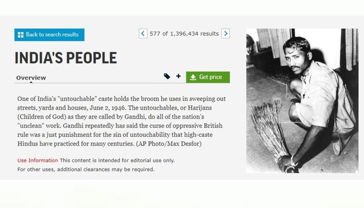 ಅಸೋಸಿಯೇಟೆಡ್ ಪ್ರೆಸ್ (Associated Press) ಪ್ರಕಾರ ಮೂಲ ಫೋಟೋವನ್ನು ಜೂನ್ 2, 1946 ರಂದು ಕ್ಲಿಕ್ಕಿಸಲಾಗಿದೆ. ಆದರೆ ಪ್ರಧಾನಿ ನರೇಂದ್ರ ಮೋದಿ ಜನ್ಮ ದಿನಾಂಕ ಸೆಪ್ಟೆಂಬರ್ 17, 1950. ಇದು "ಅಸ್ಪೃಶ್ಯ" ಜಾತಿಯ ವ್ಯಕ್ತಿಯೊಬ್ಬರು "ಬೀದಿಗಳು, ಅಂಗಳಗಳು ಮತ್ತು ಮನೆಗಳನ್ನು ಗುಡಿಸಲು ಬಳಸುವ ಪೊರಕೆಯನ್ನು" ಹಿಡಿದಿರುವುದನ್ನು ತೋರಿಸುತ್ತದೆ. ಪುಲಿಟ್ಜರ್ ಪ್ರಶಸ್ತಿ ವಿಜೇತ ಅಮೇರಿಕನ್ ಛಾಯಾಗ್ರಾಹಕ ಮ್ಯಾಕ್ಸ್ ಡೆಸ್ಫೋರ್ ಈ ಫೋಟೋವನ್ನು ತೆಗೆದಿದ್ದಾರೆ ಎಂದು ಅಸೋಸಿಯೇಟೆಡ್ ಪ್ರೆಸ್ ತಿಳಿಸಿದೆ.