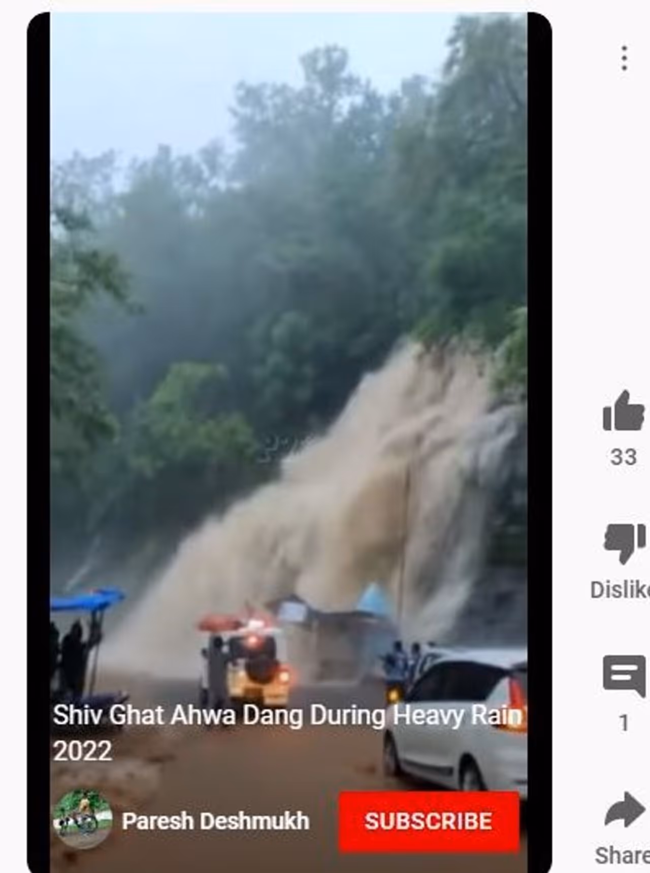 Fact Check: ಇನ್ವಿಡ್ (InVid) ಟೂಲ್ನ ಸಹಾಯದಿಂದ ವೈರಲ್ ವೀಡಿಯೊಗಳ ಕೆಲವು ಕೀಫ್ರೇಮ್ಗಳನ್ನು ಪಡೆದು ಮತ್ತು ಗೂಗಲ್ ರಿವರ್ಸ್ ಇಮೇಜ್ ಸರ್ಚ್ ಬಳಸಿದಾಗ ಪರೇಶ್ ದೇಶಮುಖ್ ಹೆಸರಿನ ಯೂಟ್ಯೂಬ್ ಚಾನೆಲ್ನಲ್ಲಿ (Youtube) ಇದೇ ವೀಡಿಯೊವನ್ನು ಕಂಡುಕೊಂಡಿದ್ದೇವೆ. ಶೀರ್ಷಿಕೆಯ ಪ್ರಕಾರ, ವೀಡಿಯೊ ಗುಜರಾತ್ನ ದಂಗ್ ಜಿಲ್ಲೆಯ ಶಿವ ಘಾಟ್ನದ್ದಾಗಿದೆ.