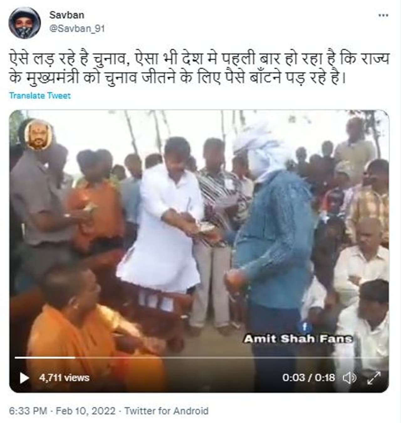 ಉತ್ತರಪ್ರದೇಶ ಮುಖ್ಯಮಂತ್ರಿ ಯೋಗಿ ಆದಿತ್ಯನಾಥ್ ಹಣ ಹಂಚುತ್ತಿರುವ ವೀಡಿಯೊವನ್ನು ಹಲವಾರು ಜನರು ಹಂಚಿಕೊಂಡಿದ್ದಾರೆ. ಈ ವಿಡಿಯೋ ಈಗ ಸಾಮಾಜಿಕ ಜಾಲತಾಣದಲ್ಲಿ ವೈರಲ್ ಆಗುತ್ತಿದೆ.
