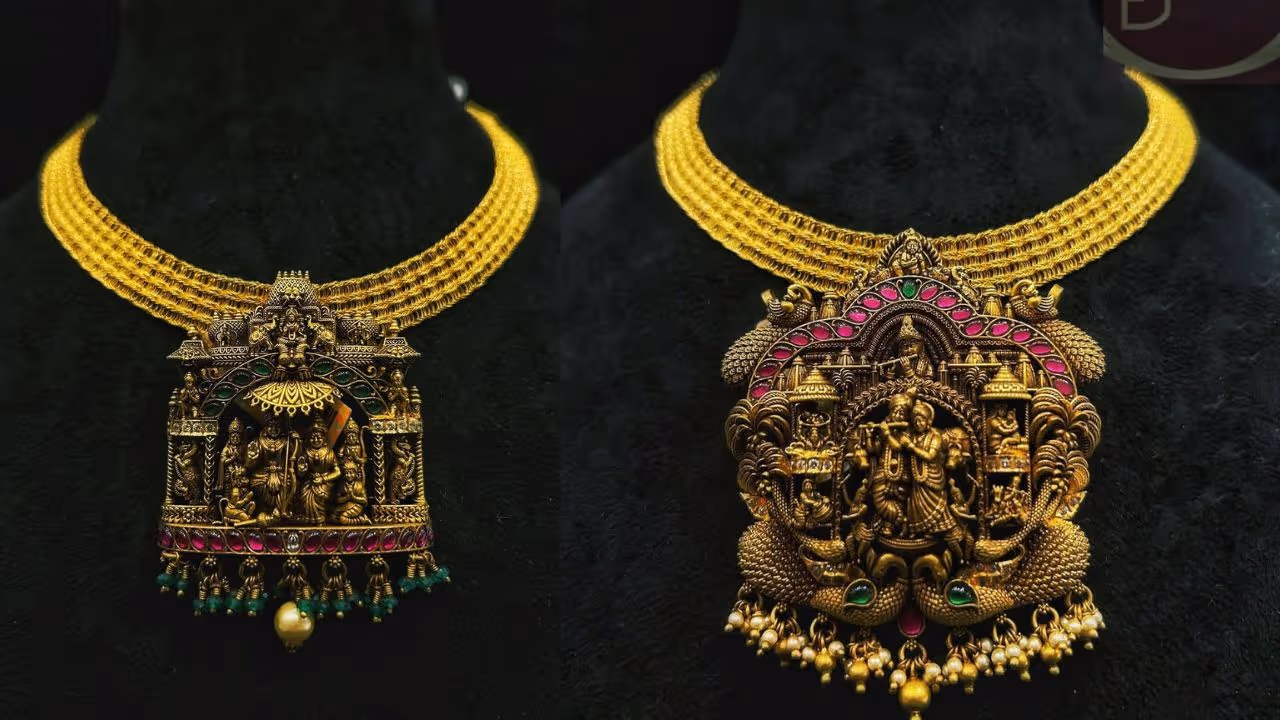 ಪ್ರತಿಯೊಂದು ಲಕ್ಷಣಗಳು - ಕಮಲದ ದಳಗಳು, ಮಾವಿನ ಎಲೆಗಳು, ನವಿಲುಗಳು ಮತ್ತು ದೇವಾಲಯದ ಕೆತ್ತನೆಗಳು ನಂಬಿಕೆ ಮತ್ತು ಸಮೃದ್ಧಿಯ ಕಥೆಗಳನ್ನು ಸಾಕಾರಗೊಳಿಸುತ್ತವೆ. ವಧುವಿನ ಹಾರದ ಭವ್ಯತೆಯಿಂದ ಹಿಡಿದು ಜುಮ್ಕಾದ ಸೂಕ್ಷ್ಮ ಹೊಳಪಿನವರೆಗೆ, ಸಾಂಪ್ರದಾಯಿಕ ಆಭರಣಗಳು ಆಧ್ಯಾತ್ಮಿಕ ಮತ್ತು ಸೌಂದರ್ಯ ಎರಡನ್ನೂ ಹೊಂದಿರುವ ಸೊಬಗನ್ನು ವ್ಯಕ್ತಪಡಿಸುತ್ತವೆ.