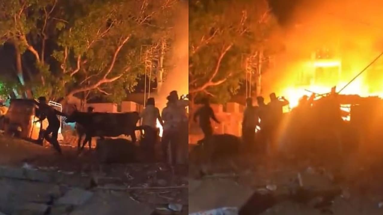 ಬೆಂಗಳೂರಿನ ಡಿಜೆ ಹಳ್ಳಿಯ ಶಾಂಪುರ ರಸ್ತೆಯಲ್ಲಿರುವ ಪ್ಲೈವುಡ್ ಅಂಗಡಿಯೊಂದರಲ್ಲಿ ಸೋಮವಾರ ತಡರಾತ್ರಿ ಭೀಕರ ಬೆಂಕಿ ಕಾಣಿಸಿಕೊಂಡಿತ್ತು. ಬೆಂಕಿಯ ಜ್ವಾಲೆ ಕ್ಷಣಾರ್ಧದಲ್ಲಿ ಪಕ್ಕದಲ್ಲಿದ್ದ ಶ್ರೀನಿವಾಸ್ ಎಂಬುವವರಿಗೆ ಸೇರಿದ ದನದ ಕೊಟ್ಟಿಗೆಗೆ ವ್ಯಾಪಿಸಿದೆ. ಈ ದುರ್ಘಟನೆಯಲ್ಲಿ ಕೊಟ್ಟಿಗೆಯಲ್ಲಿದ್ದ 20 ಹಸುಗಳ ಪೈಕಿ 6 ಹಸುಗಳು ಹೊರಬರಲಾಗದೆ ನಿಂತಲ್ಲೇ ಸಜೀವ ದಹನವಾಗಿದ್ದು, ಮಾಲೀಕ ಶ್ರೀನಿವಾಸ್ ಅವರ ಜೀವನೋಪಾಯಕ್ಕೆ ಭಾರಿ ಪೆಟ್ಟು ಬಿದ್ದಿತ್ತು.