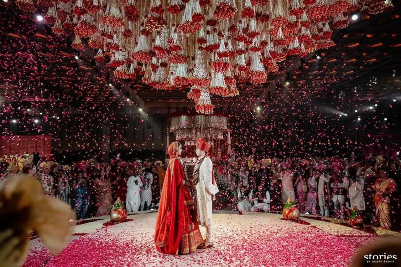 ವಿವಾಹ ಸಮಾರಂಭ ಮಂಗಳವಾರ ಮುಂಬೈನ ಜಿಯೋ ವರ್ಲ್ಡ್ ಪ್ಲಾಜಾದಲ್ಲಿ ನಡೆದಿದೆ. ಈ ವೇಳೆ ಉದ್ಯಮ ಕ್ಷೇತ್ರದ ಸಾಕಷ್ಟು ಗಣ್ಯರು ಹಾಜರಿದ್ದರು.