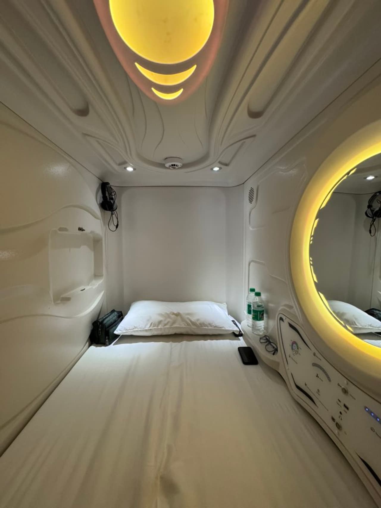ಸೌಮ್ಯ ಸಿಂಗಲ್ ಬೆಡ್ ಪಾಡ್ ಆಯ್ಕೆ ಮಾಡಿಕೊಂಡಿದ್ದರು. ಸಣ್ಣ ಸಣ್ಣ ರೂಂಗಳ ರೀತಿ ಈ ಹೊಟೆಲ್ ಡಿಸೈನ್ ಮಾಡಲಾಗಿರುತ್ತದೆ. ಹಲವು ಟೆಕ್ ಸೆಟ್ಟಿಂಗ್ ಹೊಂದಿರುವ ಮಿರರ್ ಪ್ಯಾನೆಲ್, ಜೊತೆಗೆ ನಿಮ್ಮ ಮೂಡ್ಗೆ ಅನುಗುಣವಾಗಿರುವ ಹಲವು ಬಣ್ಣಗಳ ಲೈಟ್, ಚಾರ್ಜಿಂಗ್ ಪಾಯಿಂಟ್, ಎಂಟರ್ಟೈನ್ಮೆಂಟ್ ಸ್ಕ್ರೀನ್ ಸೇರಿದಂತೆ ಹಲವು ಸೌಲಭ್ಯ ಸಿಗಲಿದೆ.
